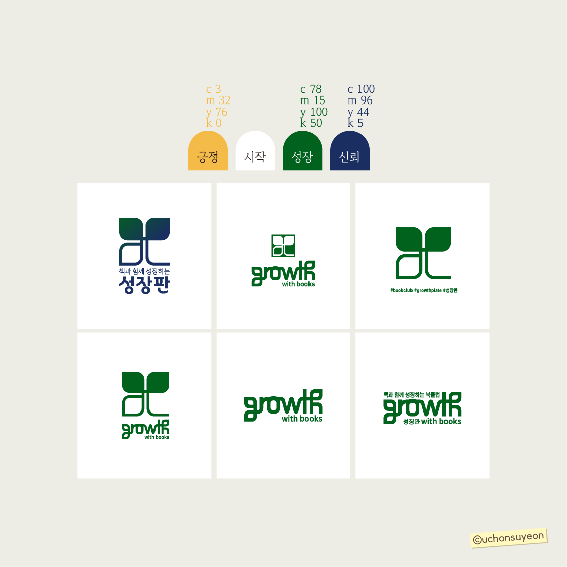 성장판 기본 로고를 응용하여 글자 로고화했습니다.