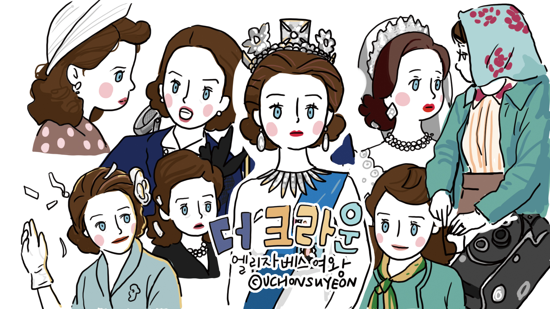 더 크라운(The Crown) 넷플릭스 오리지널 드라마예요. 현재 시즌 4까지 나와 있고 영국 엘리자베스 2세 여왕의 일대기를 그린 드라마입니다. 엘리자베스 여왕을 중심으로 스피드 드로잉을 했어요.