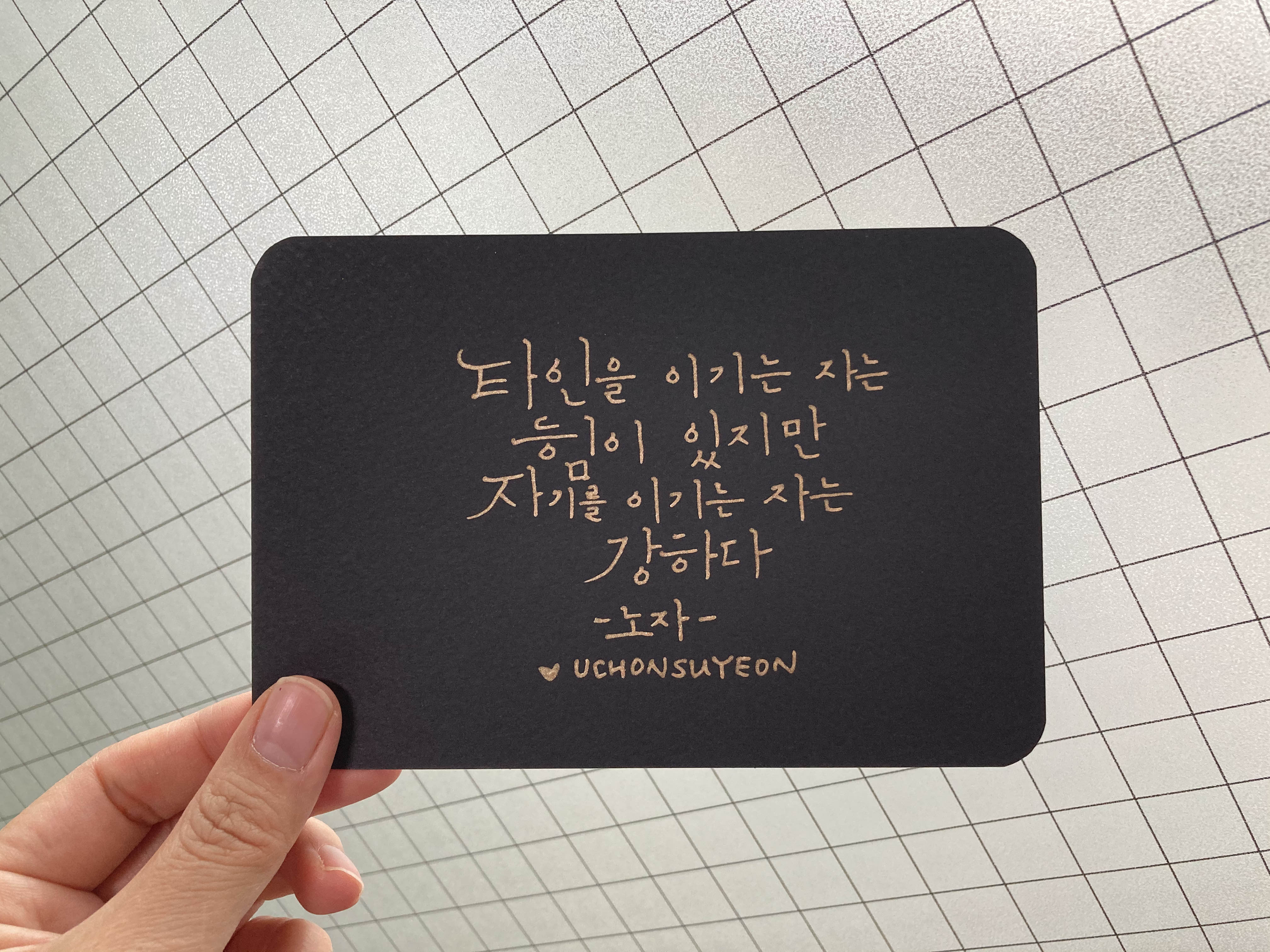 마음에 드는 문구가 있어서 써보았어요. 판타지 소설보면 표지에 있는 타이포그라피가 있잖아요. 그런 느낌을 조금 넣어보았어요. 연습해서 그런 스타일도 써보고 싶네요.