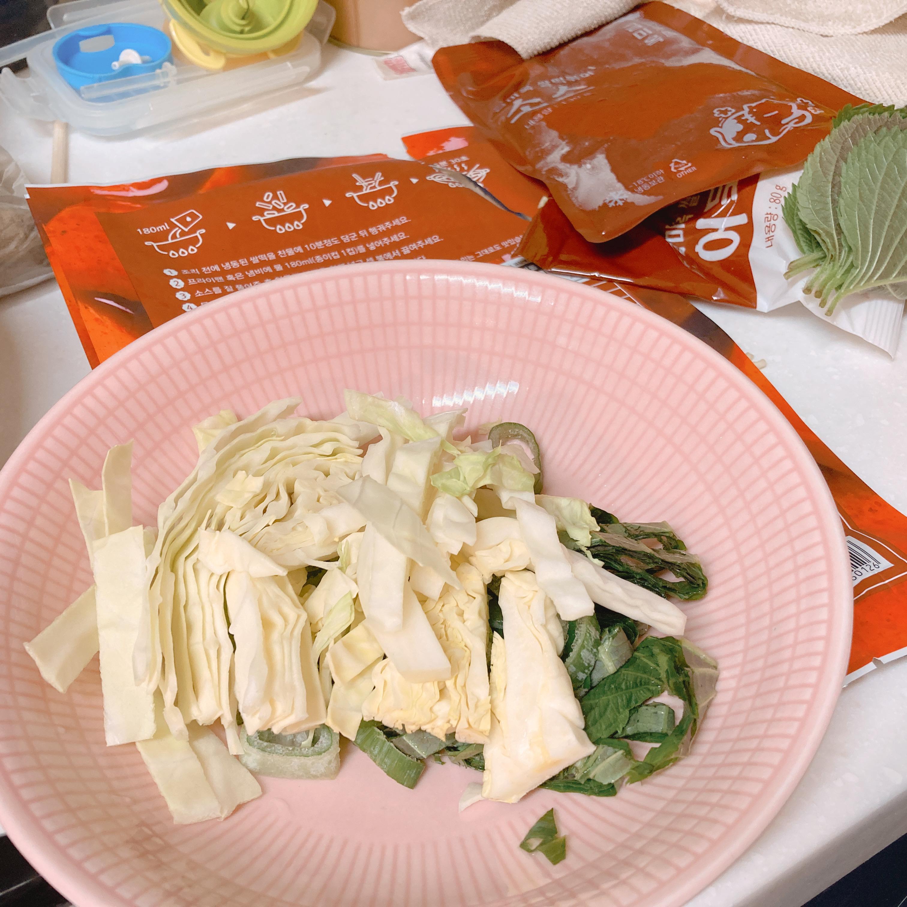 그리고 떢볶이에는 깻잎과 양배추는 더 넣기 위해 칼질을 해뒀다.