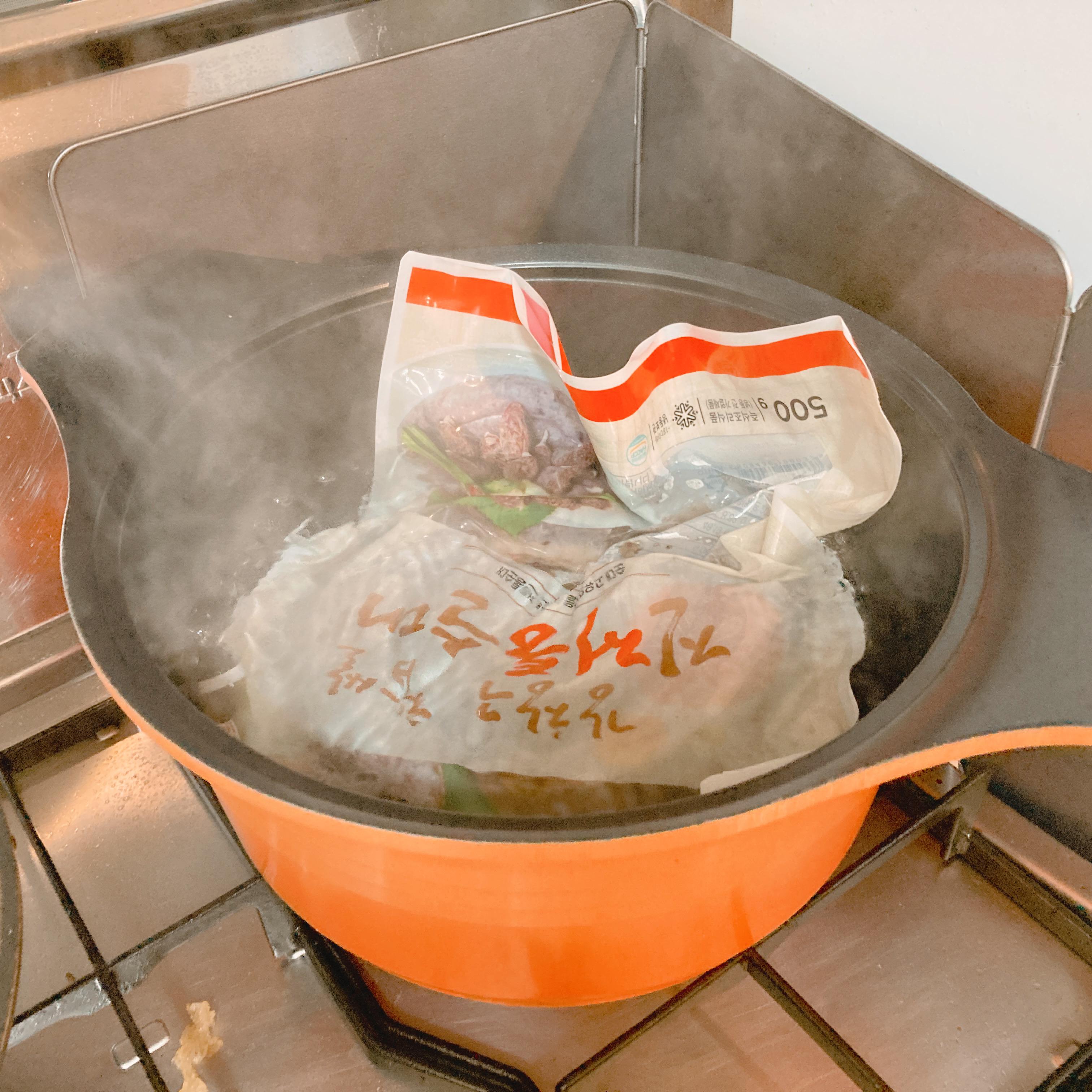대략 각 10분이면 완성이라 떡을 찬물에 담궈두고 순대를 팩 그대로 끓는 물에 넣어 삼기 시작했다.