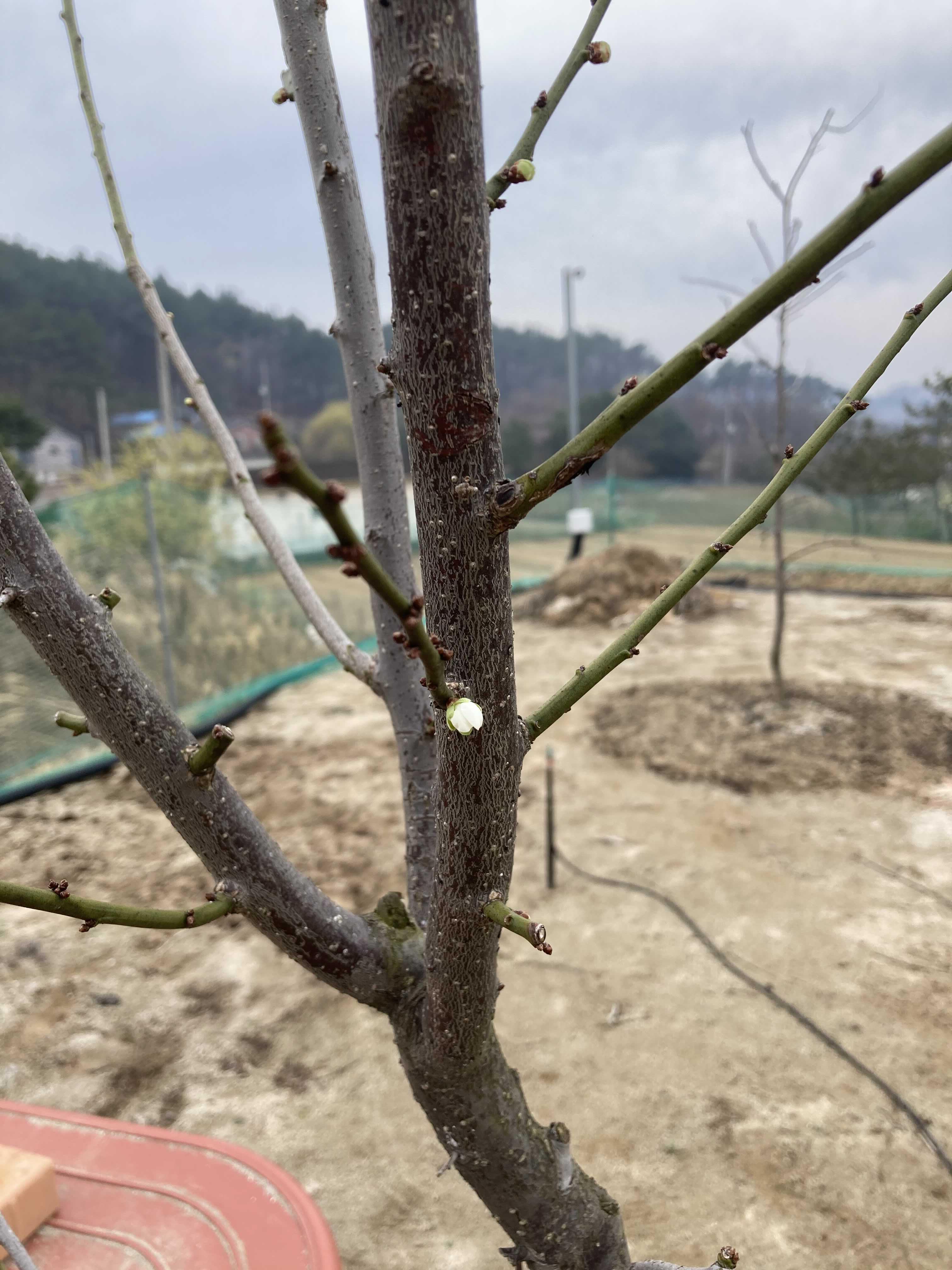 과실수는 윗부분을 잘라주어야 가지가 뻗어나가 잘 자란다고 하여, 직원분이 윗부분을 잘라주셨다. 정말 다들 친절하시더라.