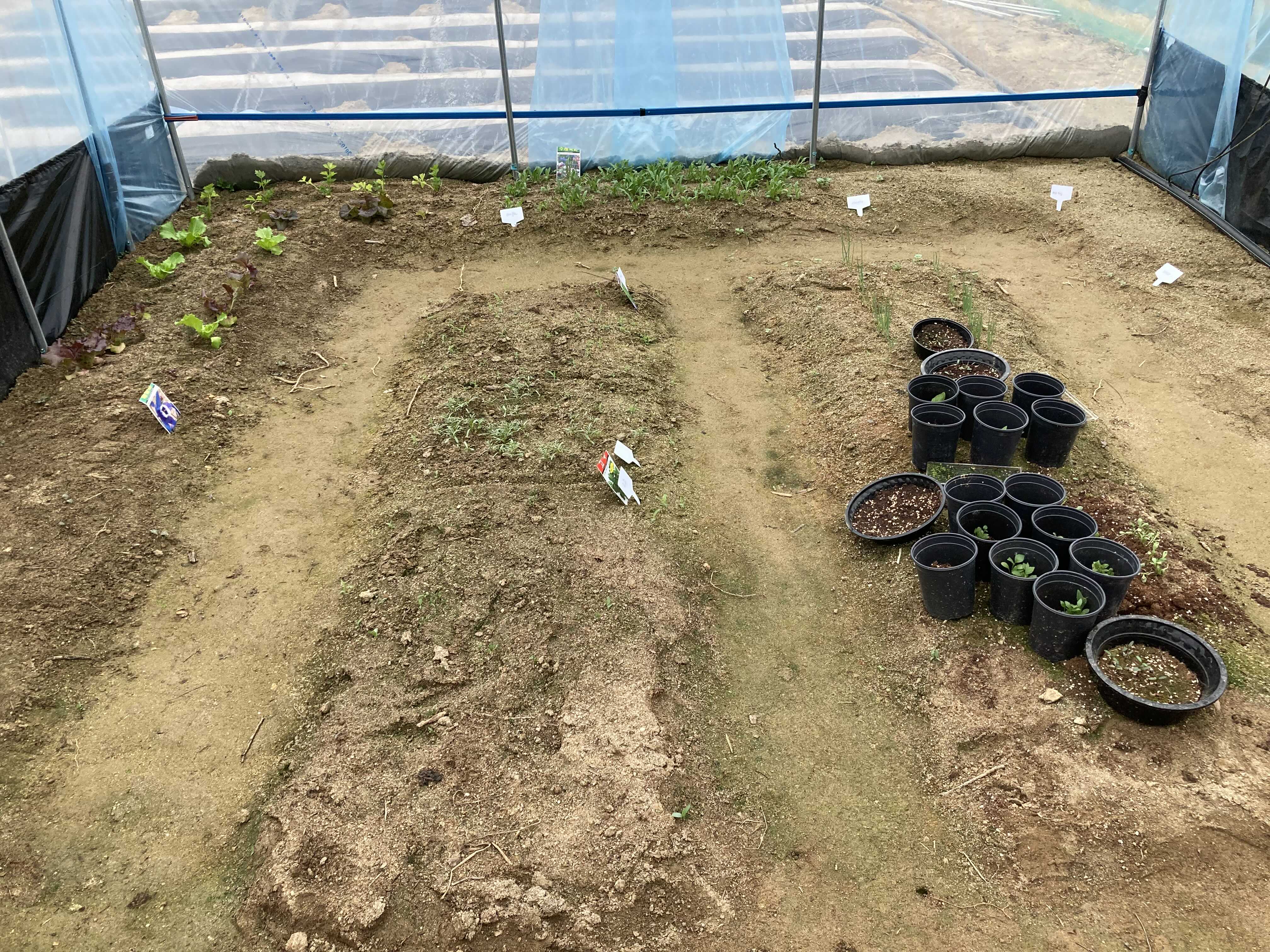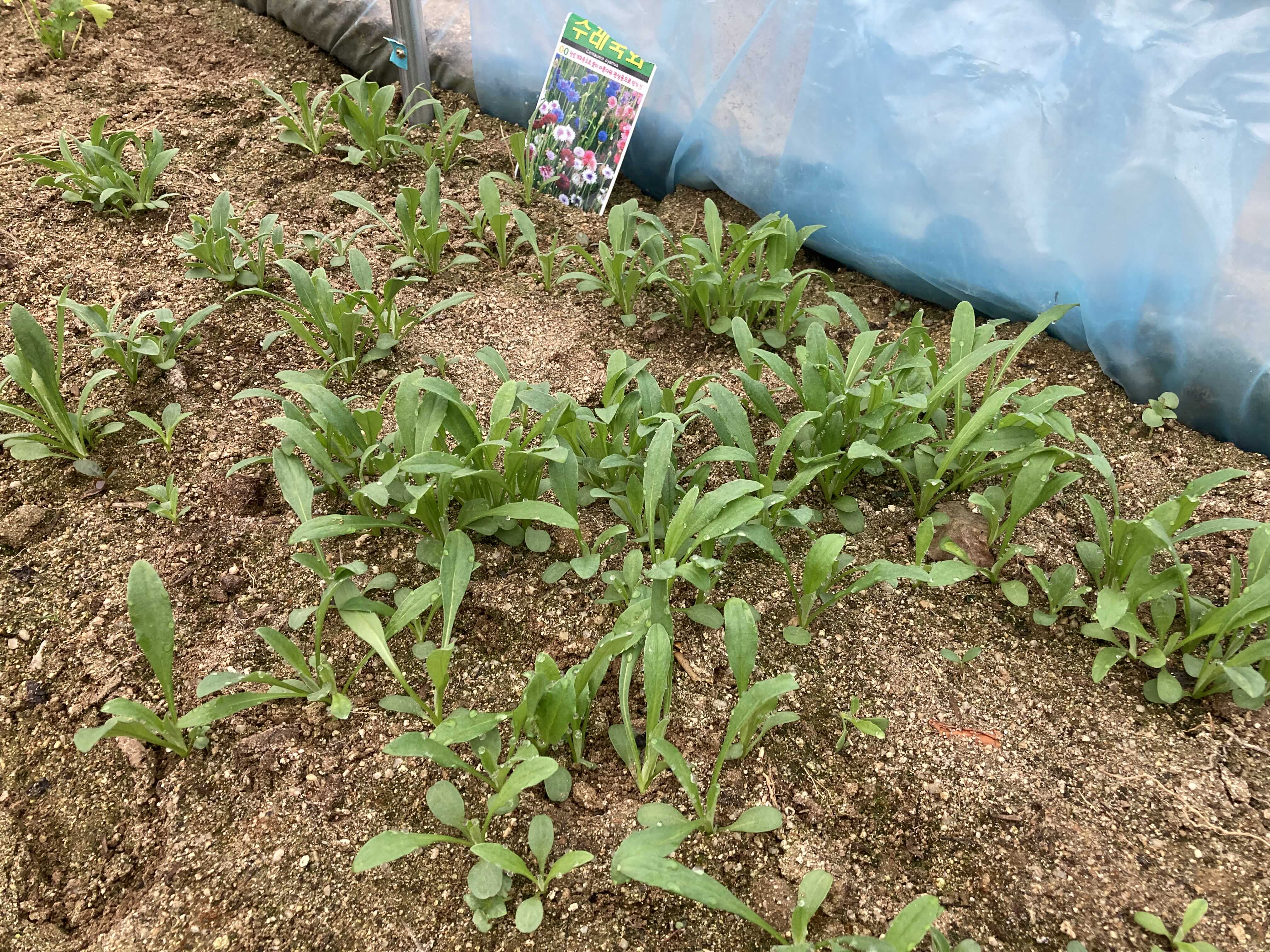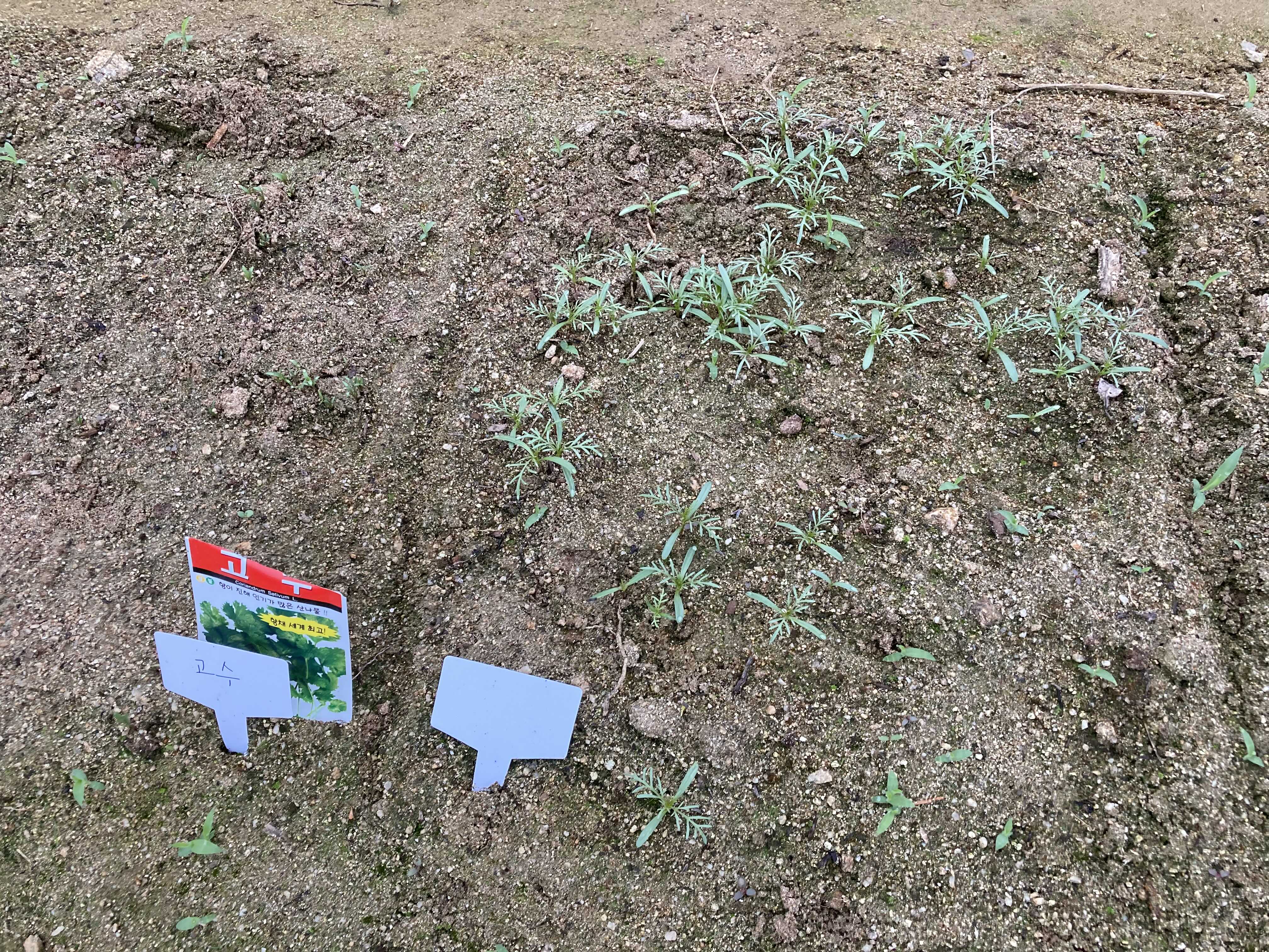 비닐 하우스 안에 식물들이 한참을 컸다. 씨앗이 나올지 걱정되던 것들도 2주가 지나니 몇개의 새싹이 삐죽 올라왔다. 작은 씨앗에서 엄청 작은 새싹이 올라와서 잘 찾아야 알 수 있다.