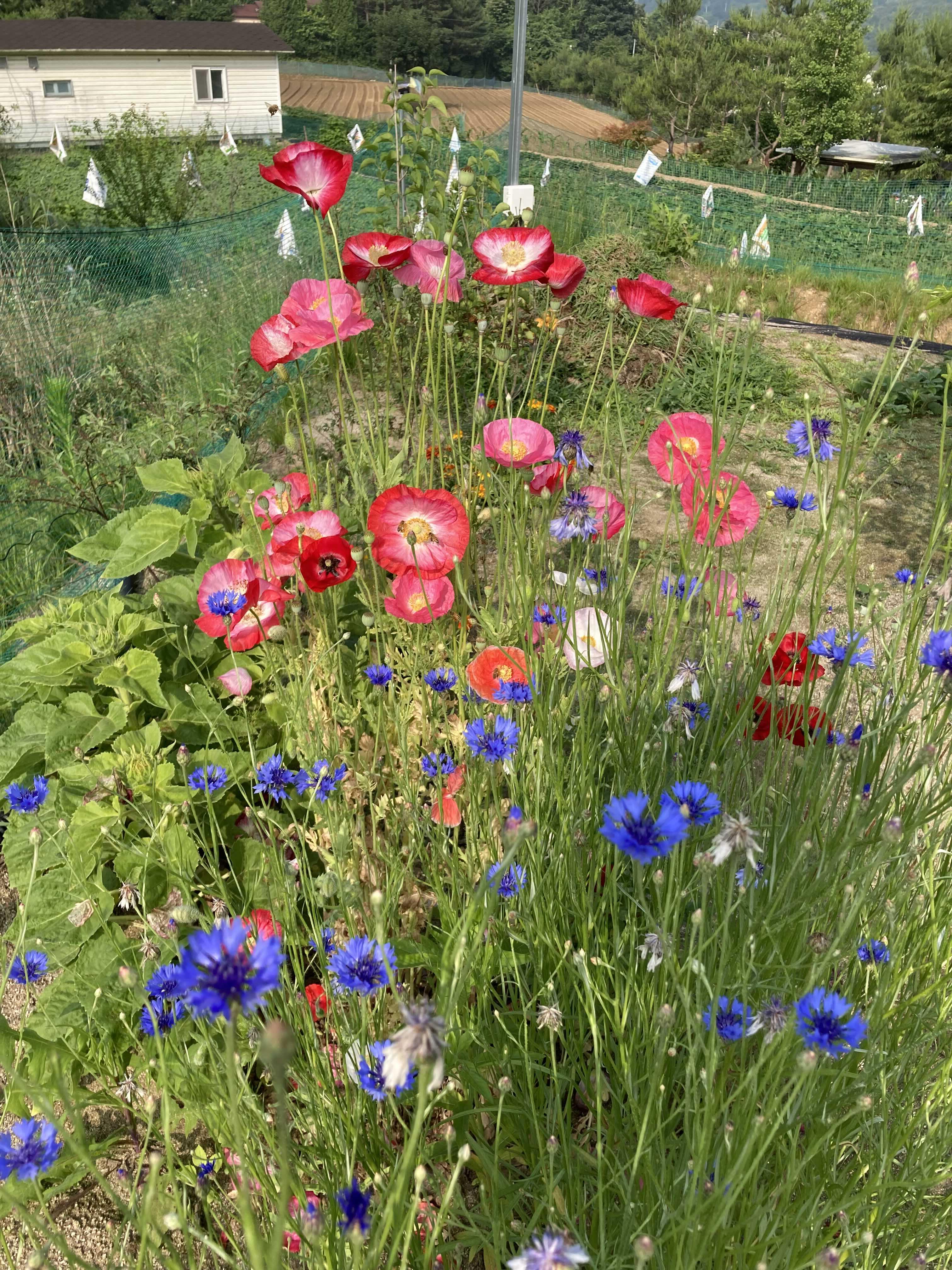 꽃사진은 참 아쉽다. 실물보다 예쁘지 않아서다. 실물의 반의 반만큼만 에쁘게 찍어도 좋으련만. 영 기술이 부족하다. 비료를 많이 주었더니 이 꽃은 한참 크고 예쁘게 피었다. 주차장 입구에 있는 작은 공간에 핀 양귀비는 참 작은데 말이다. 이 종은 잘피고 잘진다. 한복치마같은 모양새로 떨어지는 꽃잎도 괜찮다.