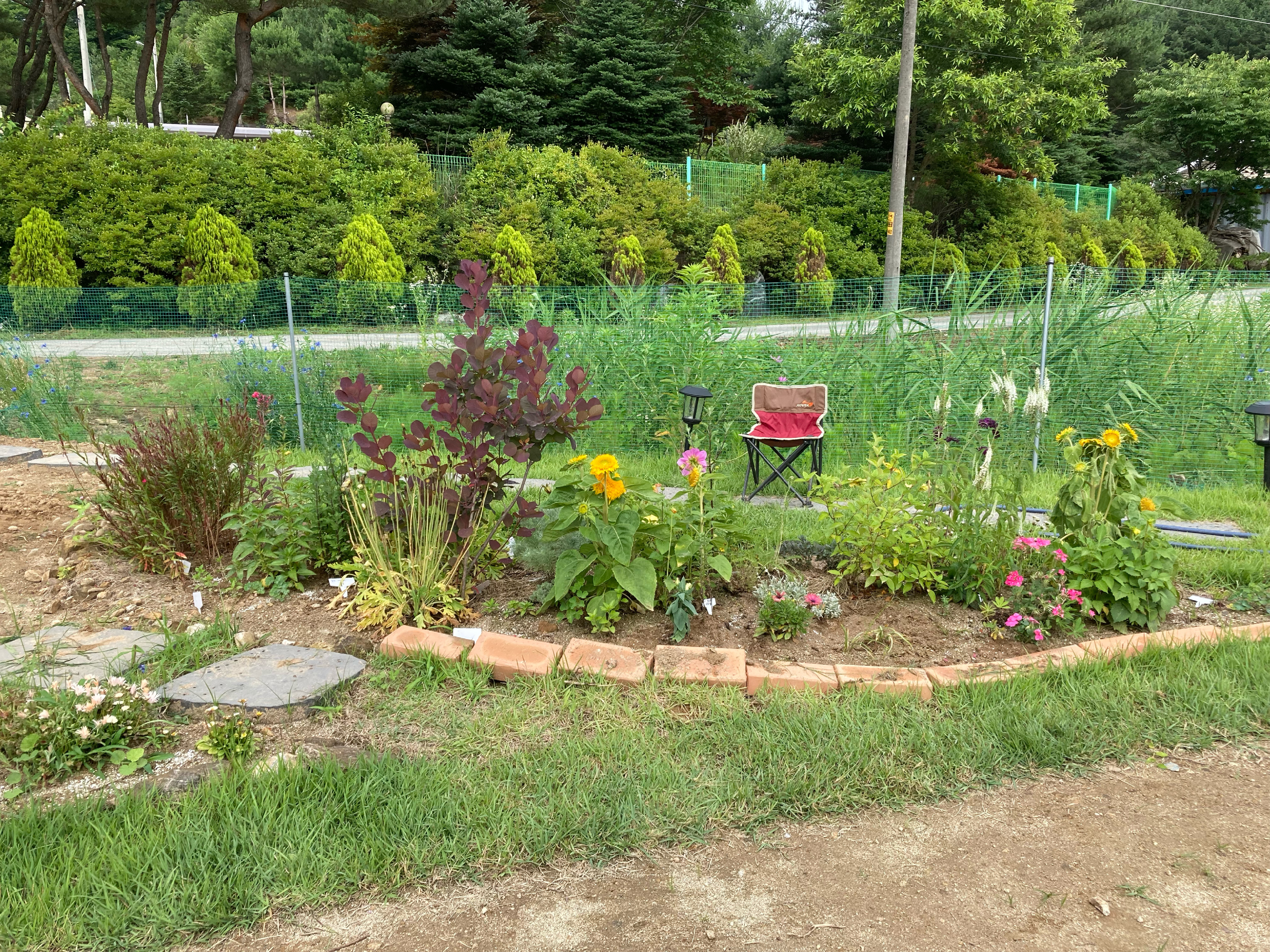 그리고 삼각형 텃밭의 수레국화는 다 뽑아내었다. 그리고 옆 땅에 잘 심었다. 옆 땅은 꽃땅으로! 아기자기하게 심어둔 나의 꽃들이 수레국화에 덮여 모양도 엉그러지고 햇볕도 못 받으며, 전체적인 균형도 엉망이라 뽑아냈다. 뽑아내고 나니 이리 시원하고 예쁜걸. 그리고 빈자리에 작은 꽃들을 사다 심었다. 노지 월동되는 다년생으로. 식물원 주인이 그러는데, 작년이 너무 추워서 다른 사람들도 노지 월동되는 애들도 많이 죽었단다. 나의 사계장미가 작은 이유도, 가시 바늘꽃들이 죽은 이유도 그래서인가 보다. 남천도. 1년도 안되었으니 그런 추위에 죽었다 보다. 처음엔 작은 풀 한 포기도 곱고 좋더구먼, 징글징글한 잡초와 나의 최애 꽃으로 나뉘게 되었다. 전자는 당연히 가차 없이 버린다. 아무리 최대 꽃이어도 안 어울리면 뽑아버리던데, 나는 그러기엔 좀 더 시간이 걸릴 것 같다. 다만, 죽을 걸 각오로 식물의 위치를 바꾸는 정도다.