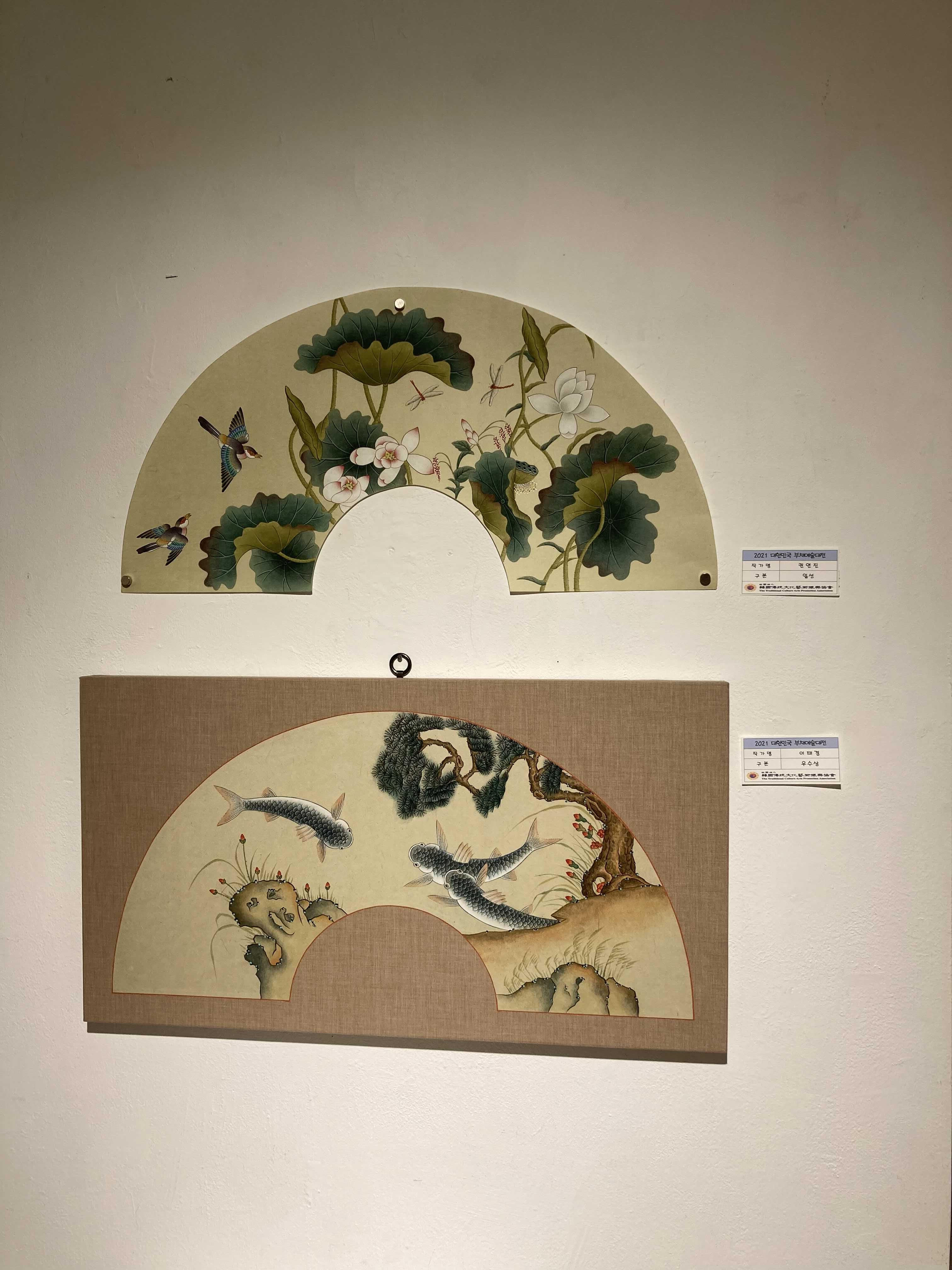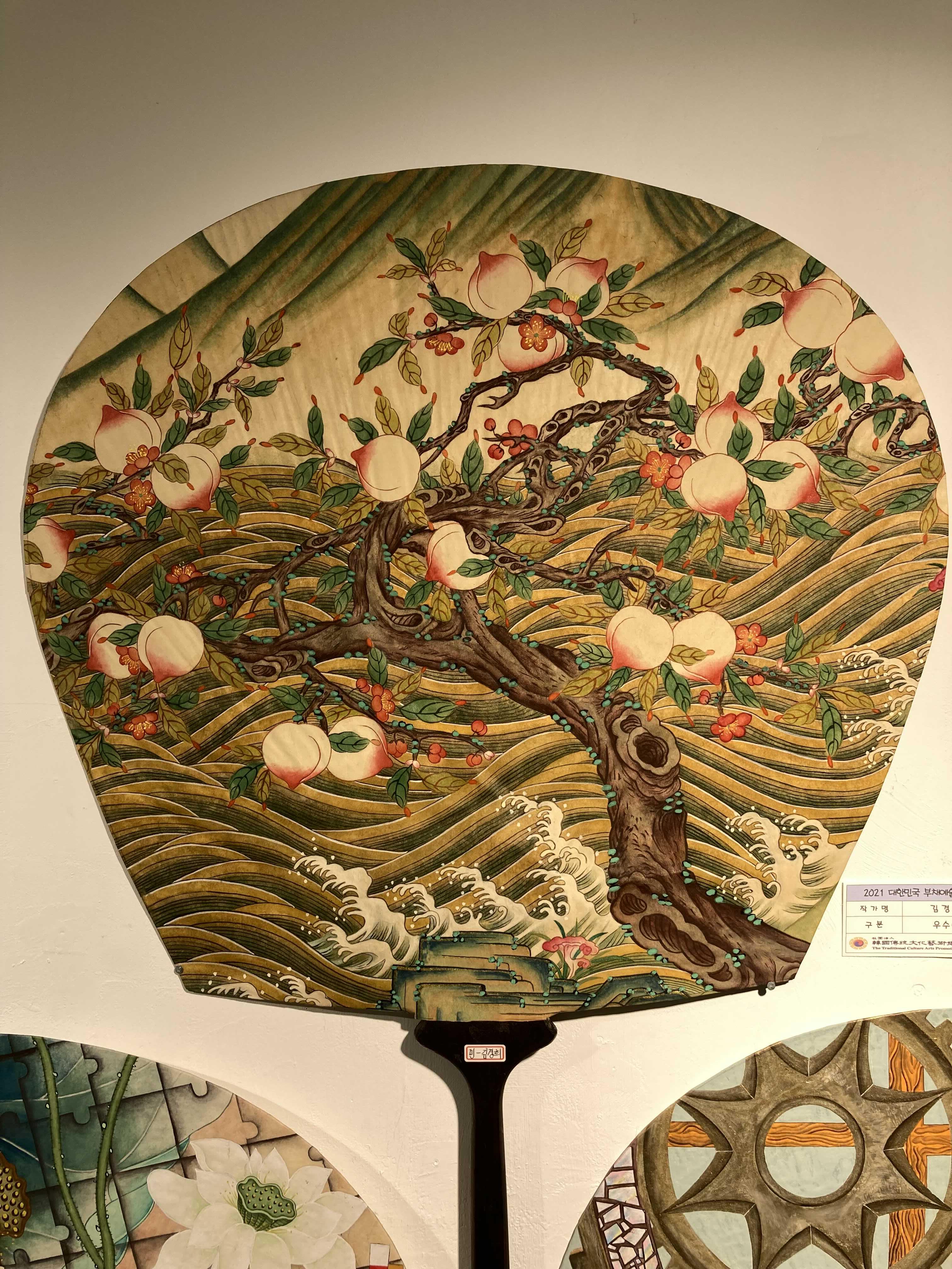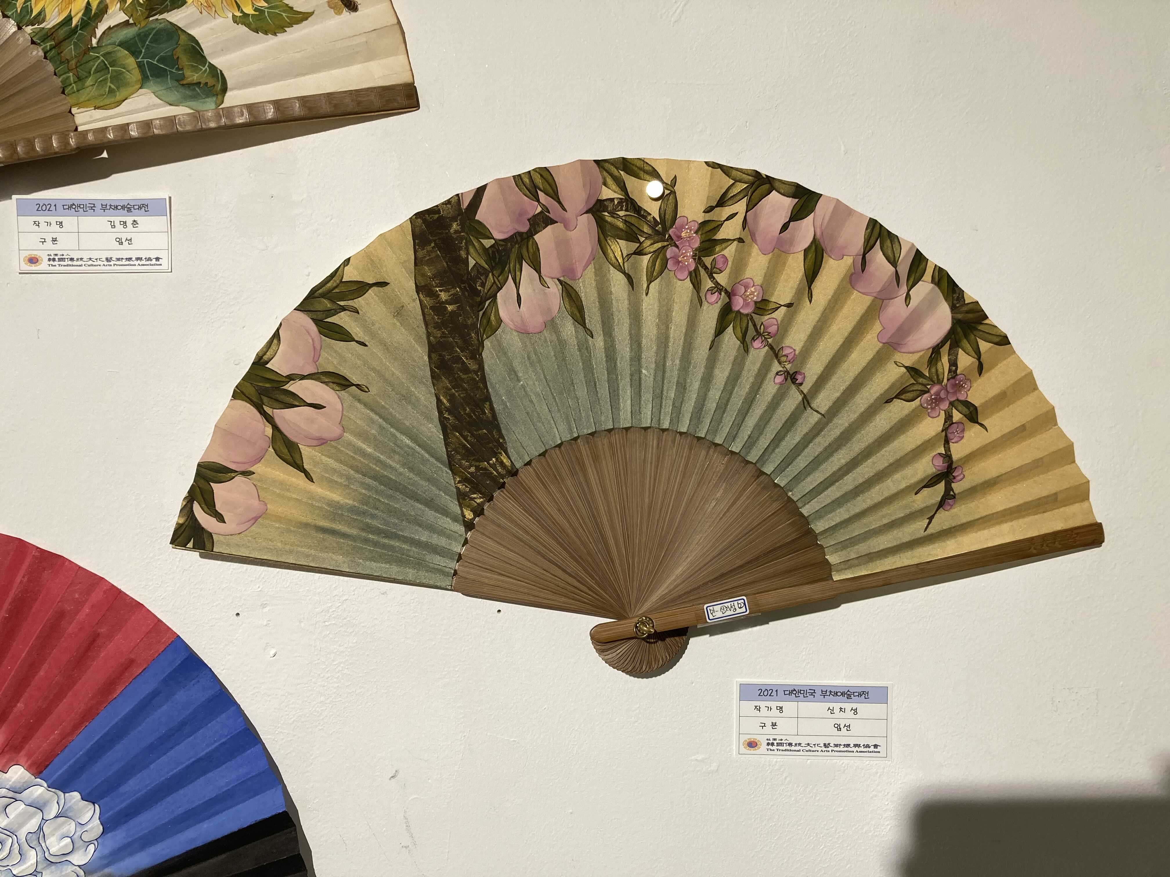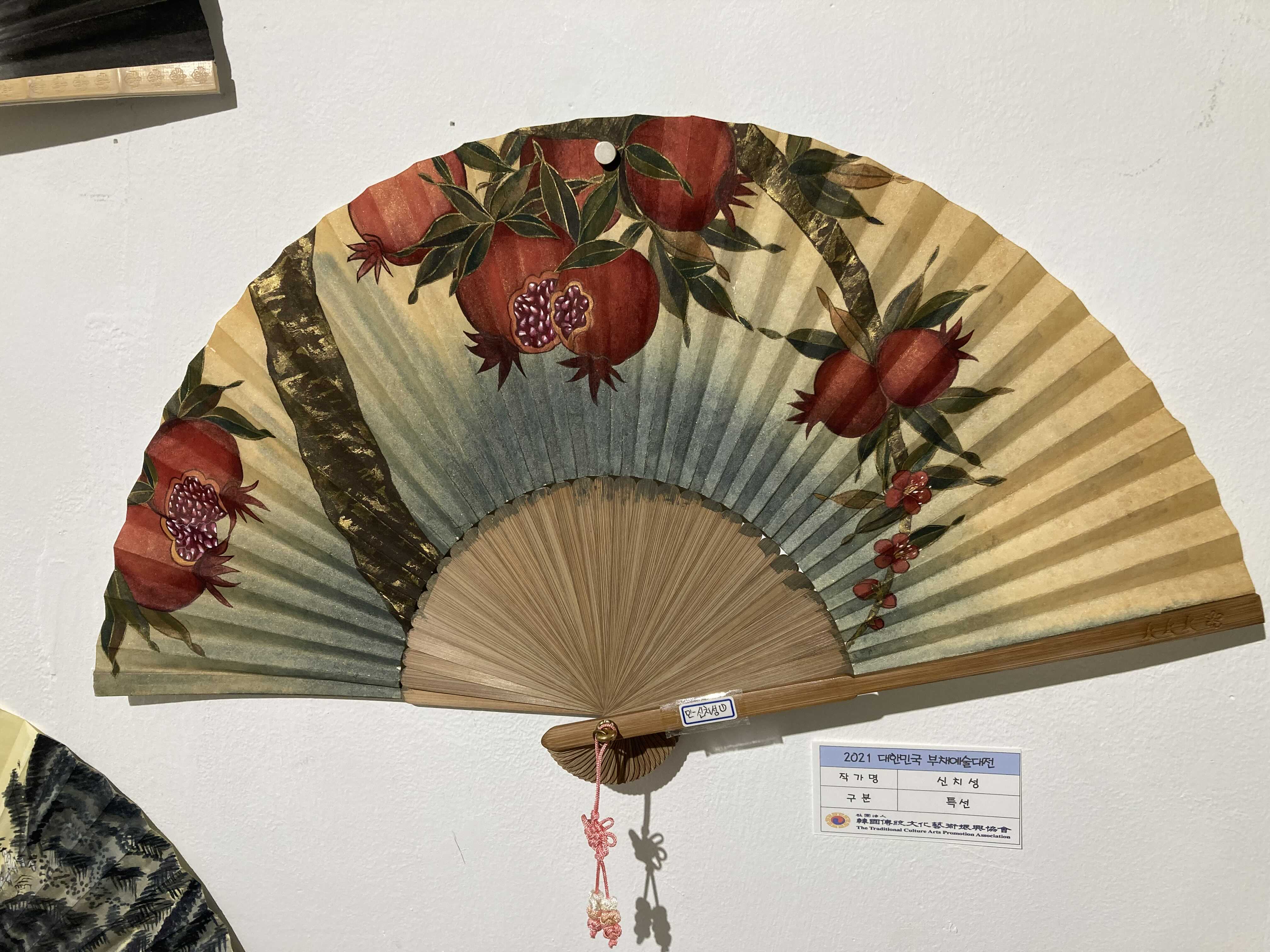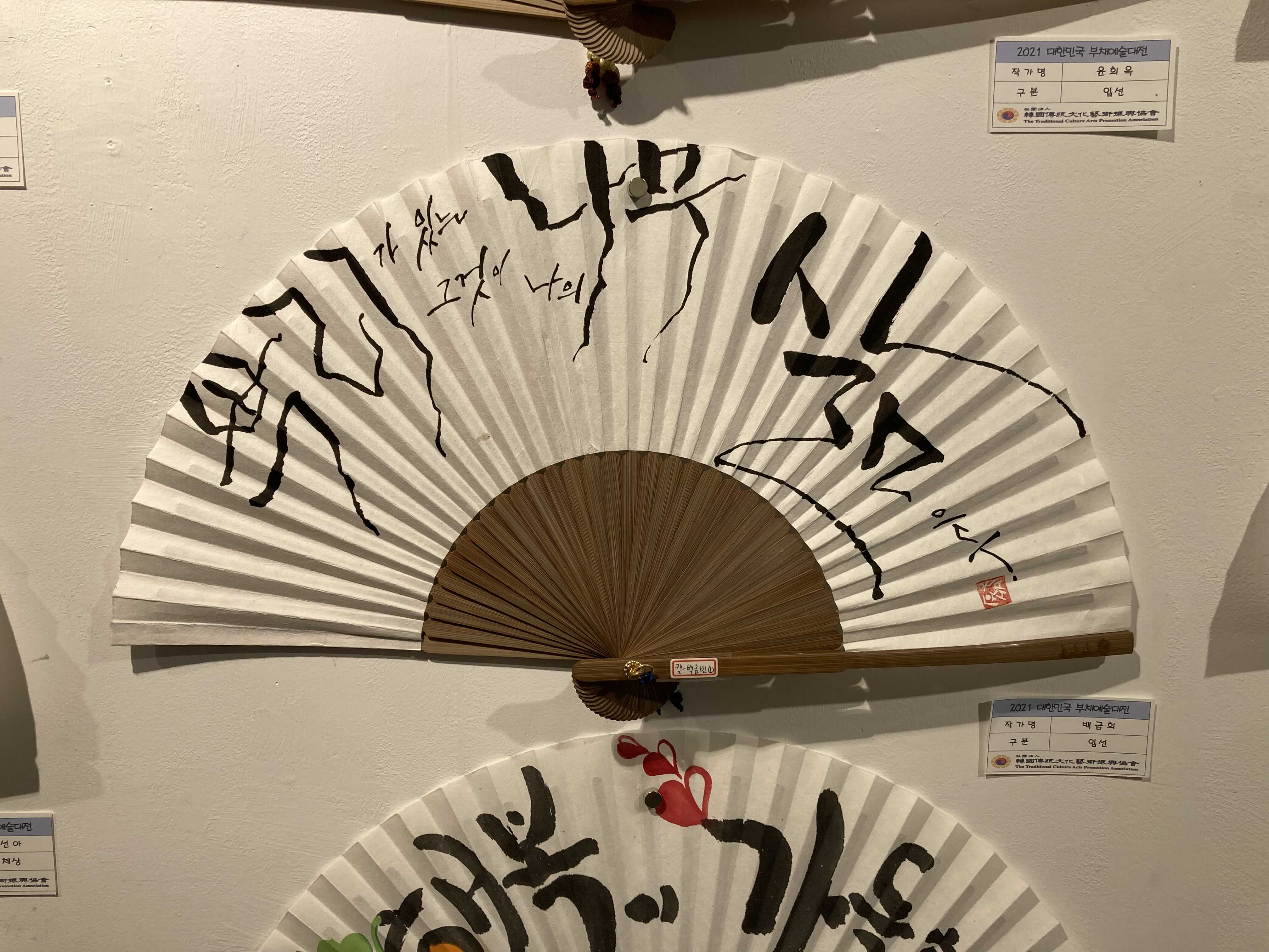 부채대전 전시회는 부채라는 주제로 다양한 작품들이 있었다. 자개부터 가죽까지 있었고 캘리그래피나 서예 등등 다양했다. 민화작품도 많았고. 내 취향 그림이지만 입선정도에 그치는 경우도 많았다. 그만큼 작품이 많았다.