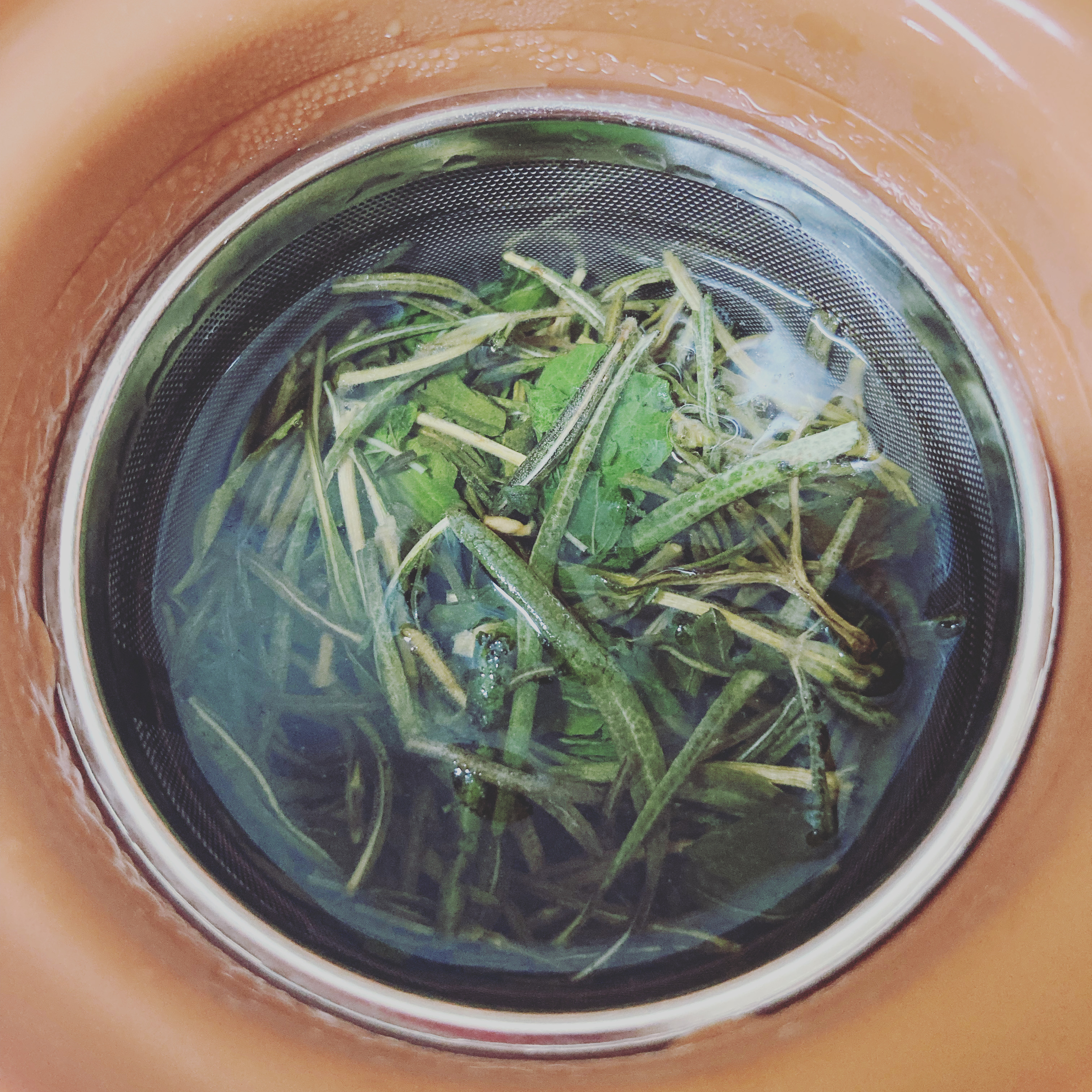 찻잎을 10분이상 우리면 '침출물'이 되면서 효과가 더 좋다고 하던데, 찻잎을 다 건져냈음에도 그랬어요. 얼음을 넣어서 먹어도 보았는데, 이건 끝까지 상큼한 허브향이 감돌아서 취향에 맞더라고요. 뜨거운 건 기분 좋은 허브향에 묵직함이 뒤로 딸려오는 느낌이라면, 얼음물에 담근 허브차는 산뜻하면서 끝까지 기분 좋게 먹을 수 있었어요.