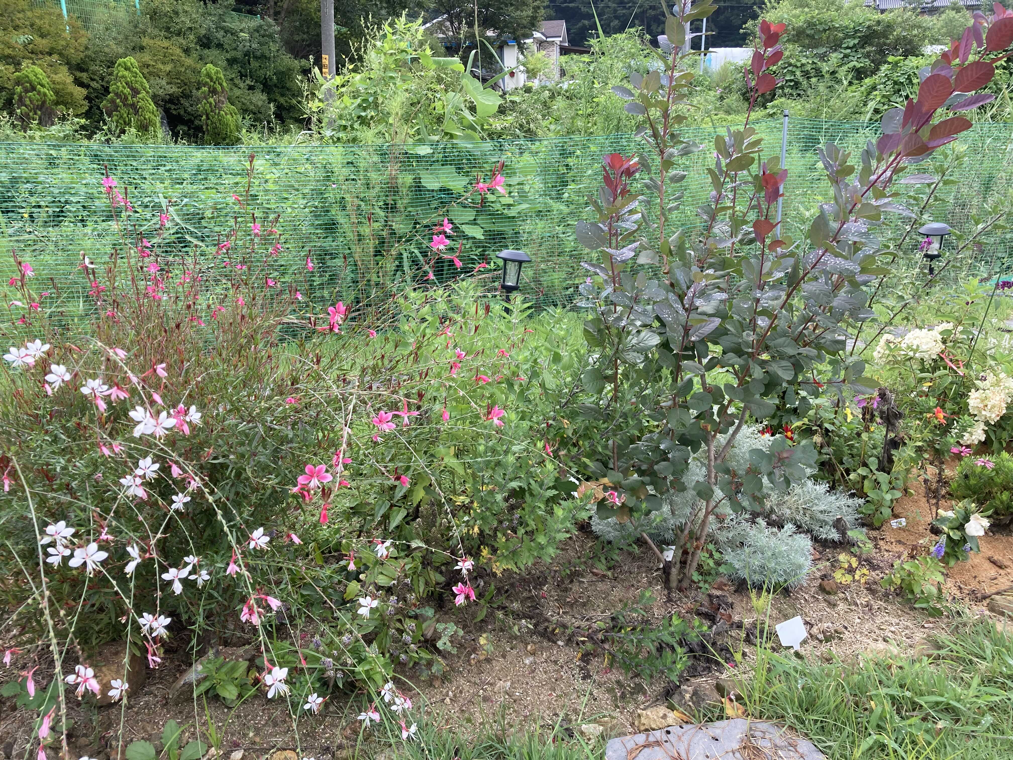 와, 만화에서 보던 두더지 길을 이리보니 참 신기했죠. 그런데 그게 끝이 아니었어요. 그다음 날도 그 다다음날도 똑같은 자리에 굴을 만들더라고요. 다시 꽃들을 심어주었지요. 남편은 두더지 입구 즈음에 농막에 있던 철심 여러 개를 임시로 꽂았어요. 그러니 다행히도 그다음 날은 두더지 굴이 안 생겼더라고요. 하아.... 두더지 생각하면 귀엽지만 꽃밭을 생각하면 무섭네요. 그리고 양평이 도심하고 가까워서 크게 시골이라고 생각 안 했는데, 별의 별개 다 있습니다. 노루며 꿩이며 멧돼지도 있어요.