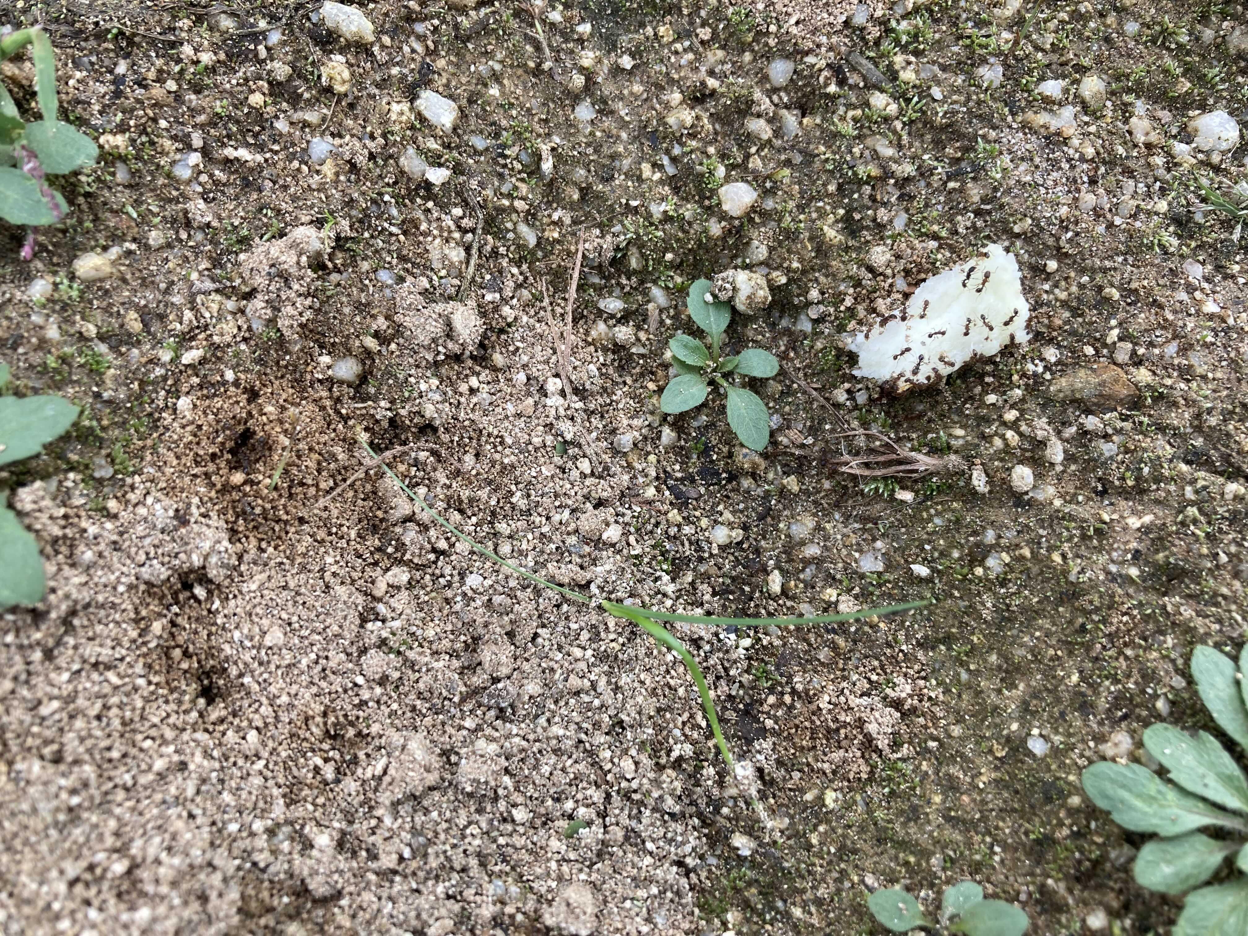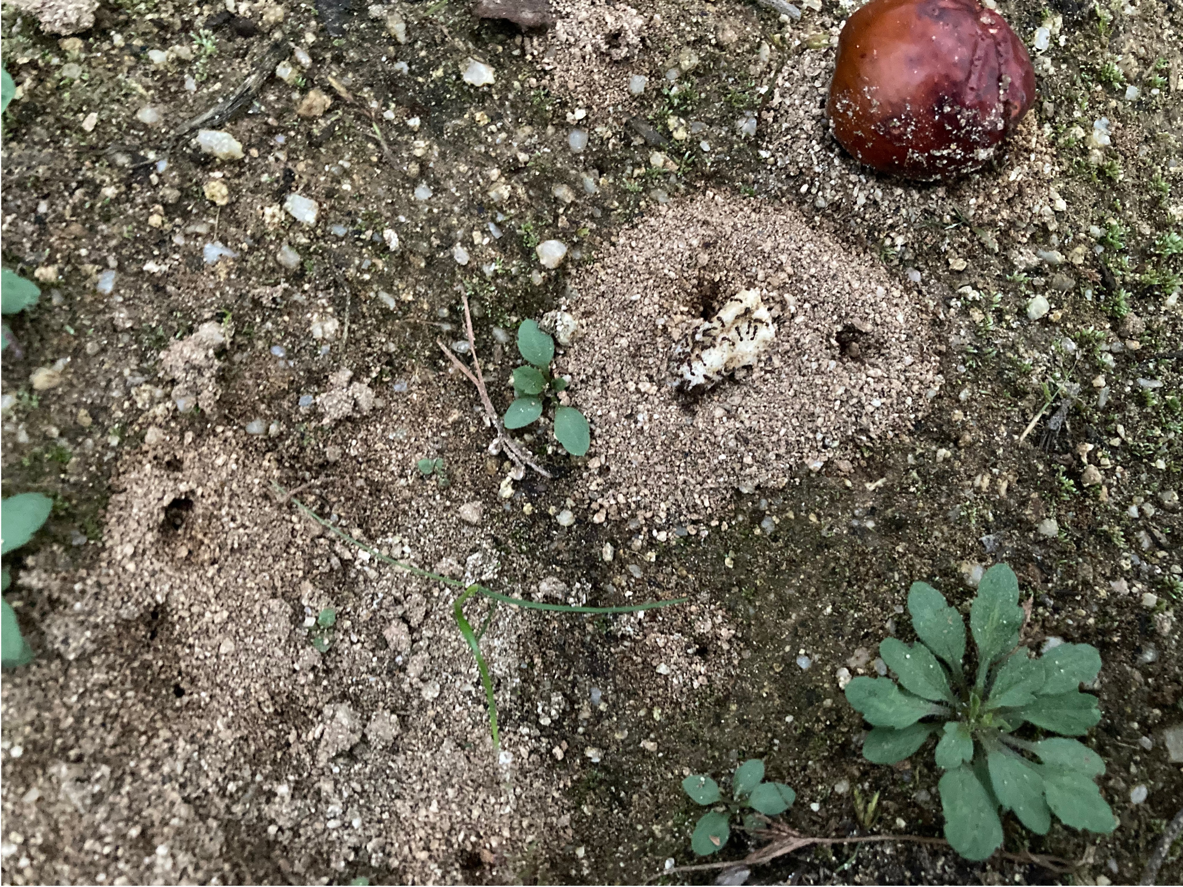 그래서 먹다 남은 씨앗부분을 개미굴 입구에 놓아두었죠.