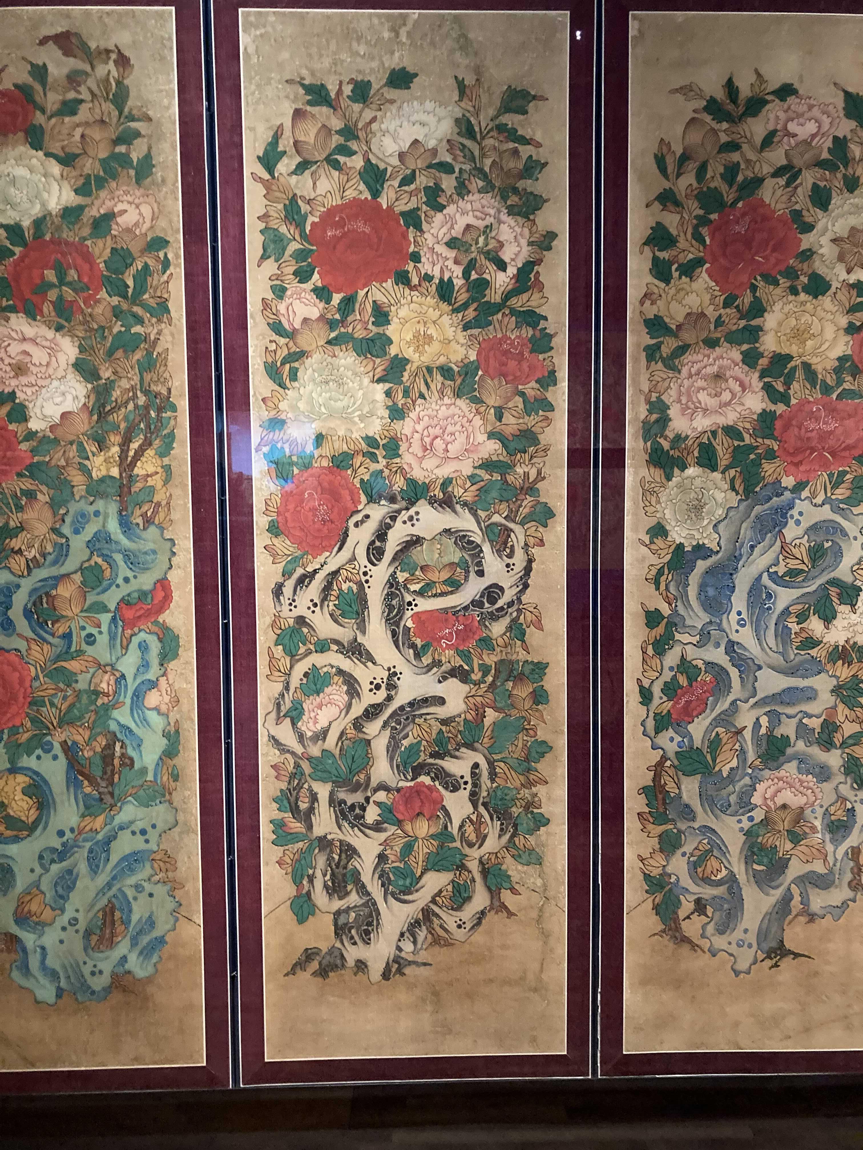 국립고궁박문관에서 전시를 하고 있고, 무료예요! 다 보고 나서 깜짝 놀랐어요. 이런 멋진 전시가 무료라니 말이죠! 영상과 결합하거나 빛으로 멋을 낸 전시관도 있고요. 유명한 민화작가의 작품들도 많았어요. 모란이 수놓아있는 한복이나 가구도 있지요. 잘 구성되어 있는 훌륭한 전시였네요.