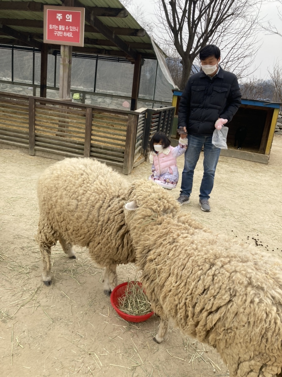 거위와 타조도 몇 마리 있습니다. 너무 추웠지만 애들이 얼음 썰매를 타고 온 게 좋았네요. ㅎㅎ 양 먹이 주는 일도 제법 재밌었고요.