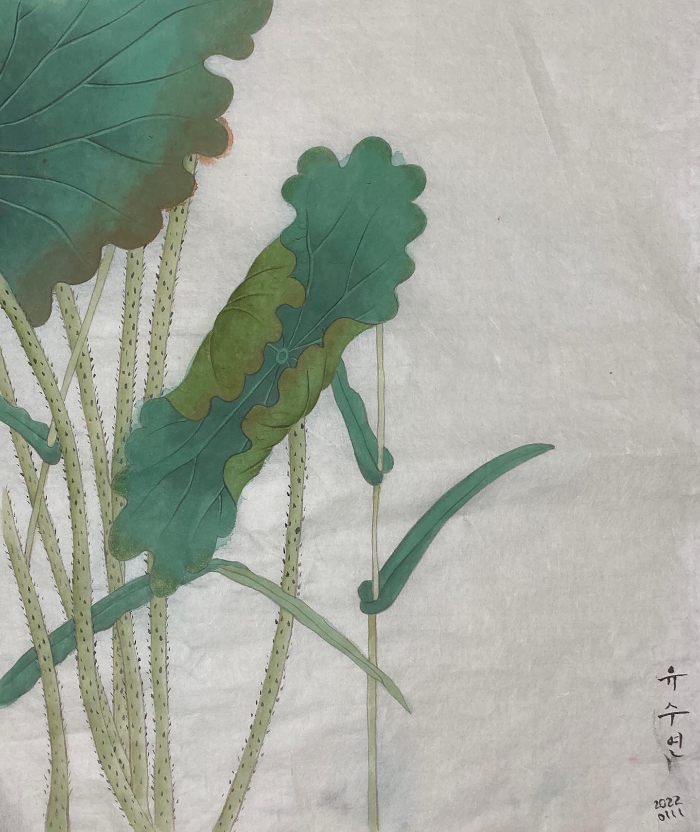 이 말린 연잎이 전작(아래그림)에서 망한거라 완성을 못했었어요.