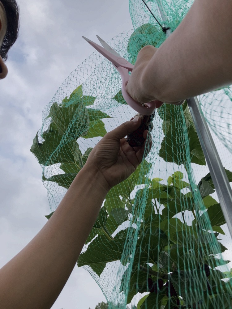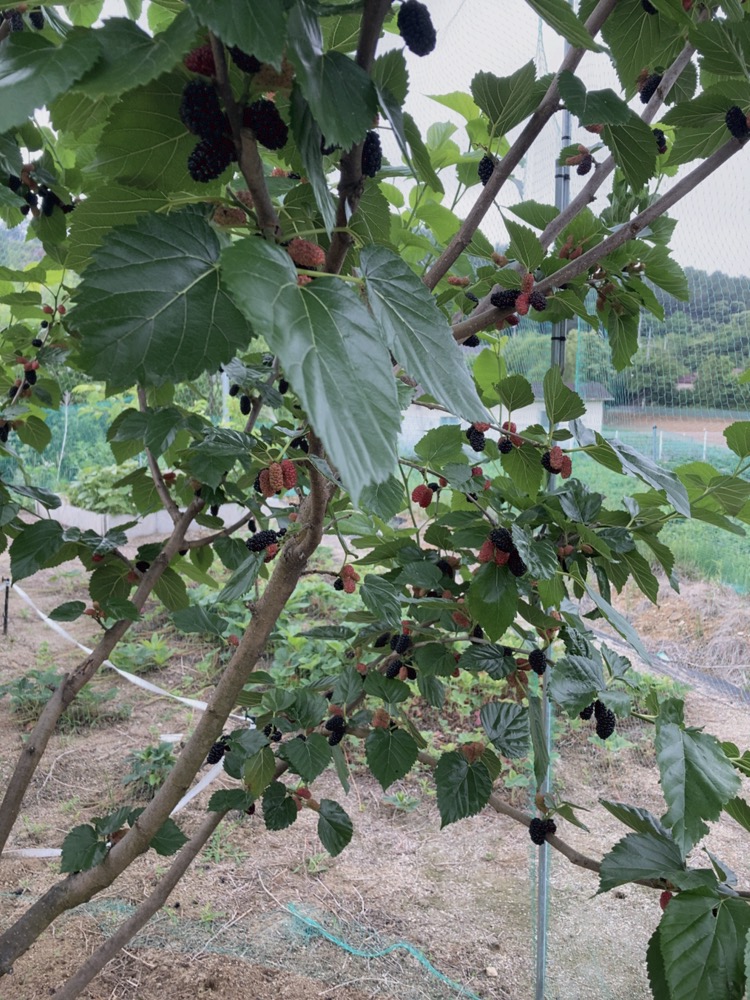 그리고 겸사겸사 이번주엔 새망을 복분자로 옮겨주었어요. 새망을 설치해서 그런지, 제법 소출이 있어서 오디는 자연과 나눠먹기로 했네요. 일부 따서 뒷집 옆집에도 나눠드렸는데, 오디쨈으로도 만들어 드셨데요. 오호. 다음 주에 가면 좀 더 따서 잼으로 만들어야겠네요.