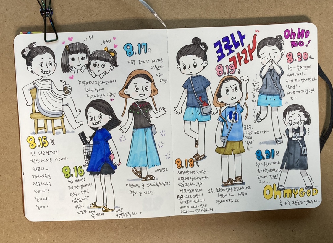 코로나의 기세가 꺽이지 않은 요즘입니다. 그 기세가 저희 집에도 쳐들어왔네요. 허허허허허허허허허허...... 다음주에 그릴 이번 주가 기대 되네요. 이번주에는 많~~이 누워 있다가 주말에서야 일어나 그림을 그렸어요. 그나마 다행이네요. 다음 주까지 안넘어가서요!!! ㅎㅎㅎ 모두 건강하세요 ~