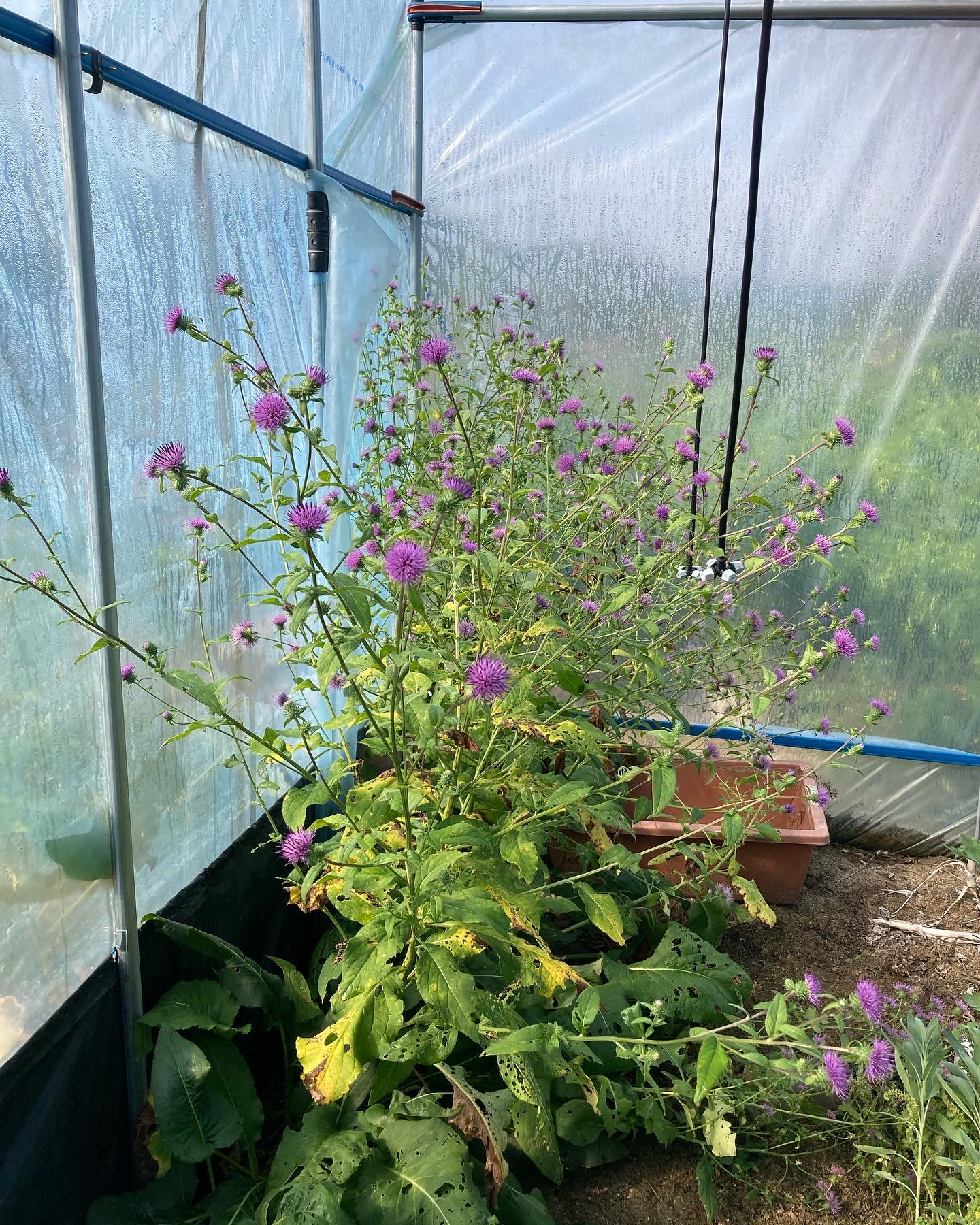 뭔 나물을 사다 심어 뒀는데, 잎은 벌레들이 다 먹고 꽃이 한가득 피었어요. 방풍나물도 방풍나무가 돼가지고 윗부분을 잘라 버렸는데, 그러네요… 나물 잘라먹는 시기도 모르겠고 해 먹는 법도 모르니 다 이렇게 돼요.
