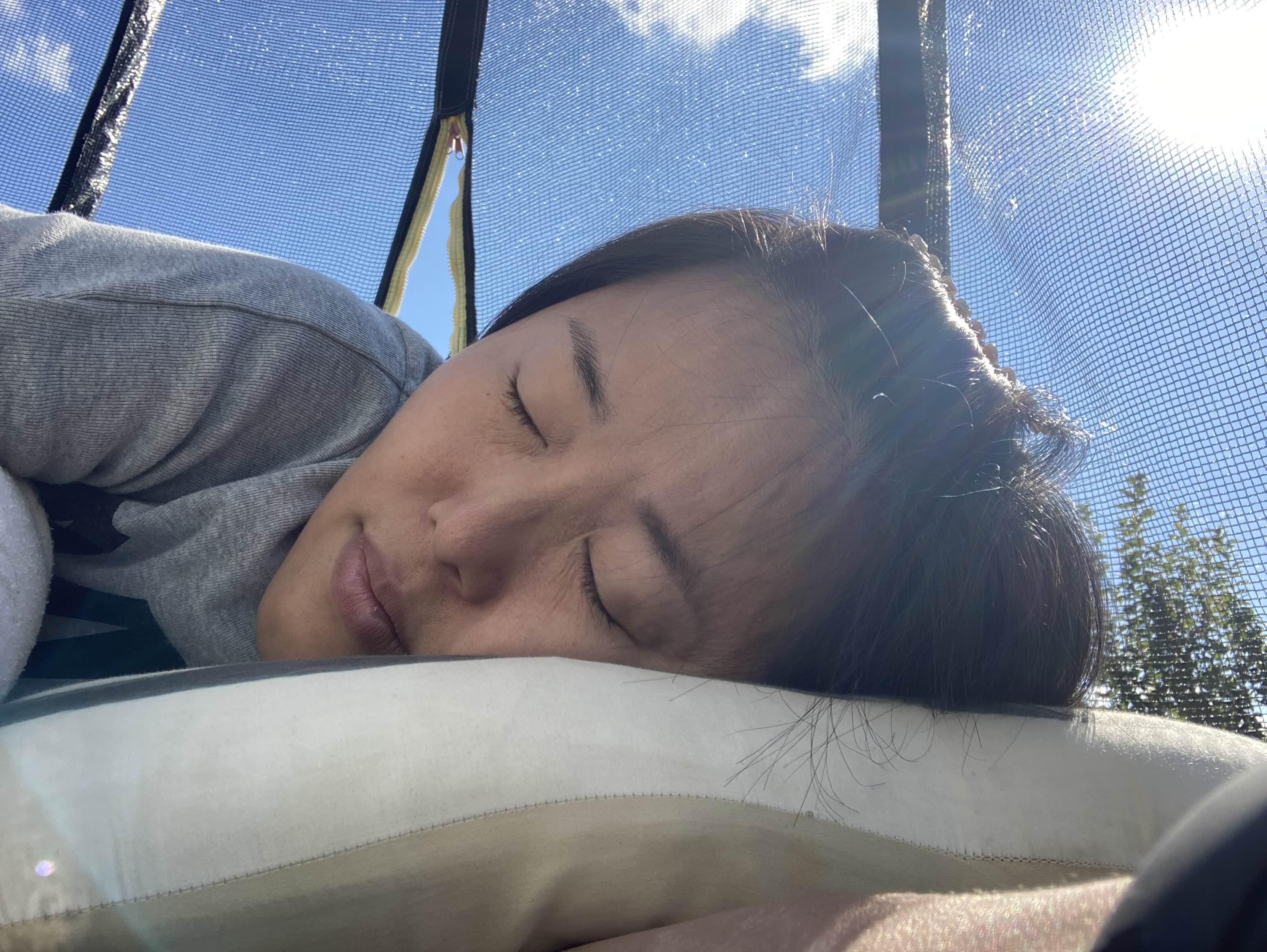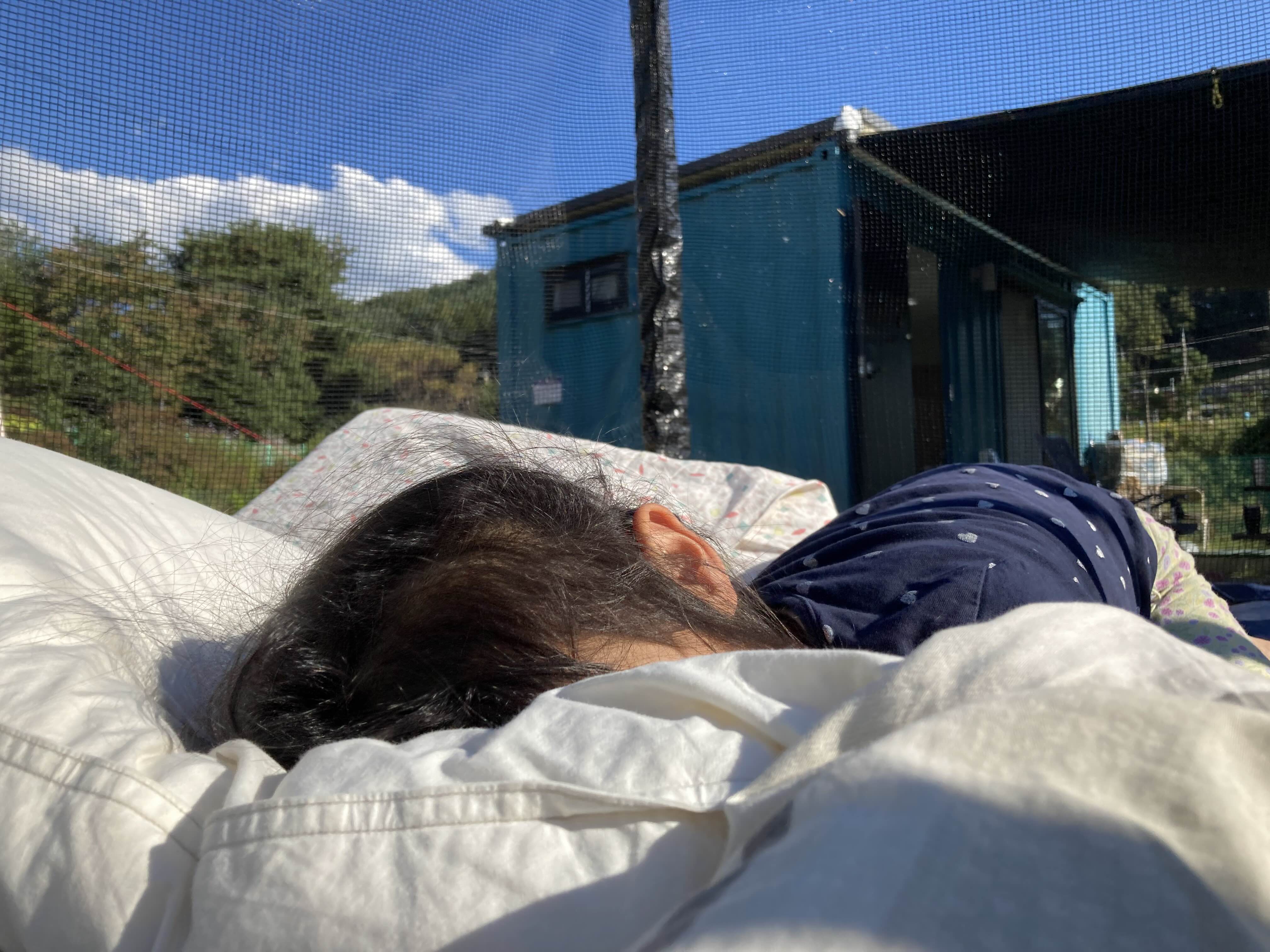 농막은 늘 흙먼지라 이불에 많이 쌓여요. 햇볕이 좋길래 이불넣어 털고 베개들은 방방이에 올려 소독하고 했어요. 아이들도 좋다고 들어오고 조도 베개 껴안고 파란 하늘의 흰구름 보며 시간을 보냈어요. 이런게 행복이지요. ㅎㅎ