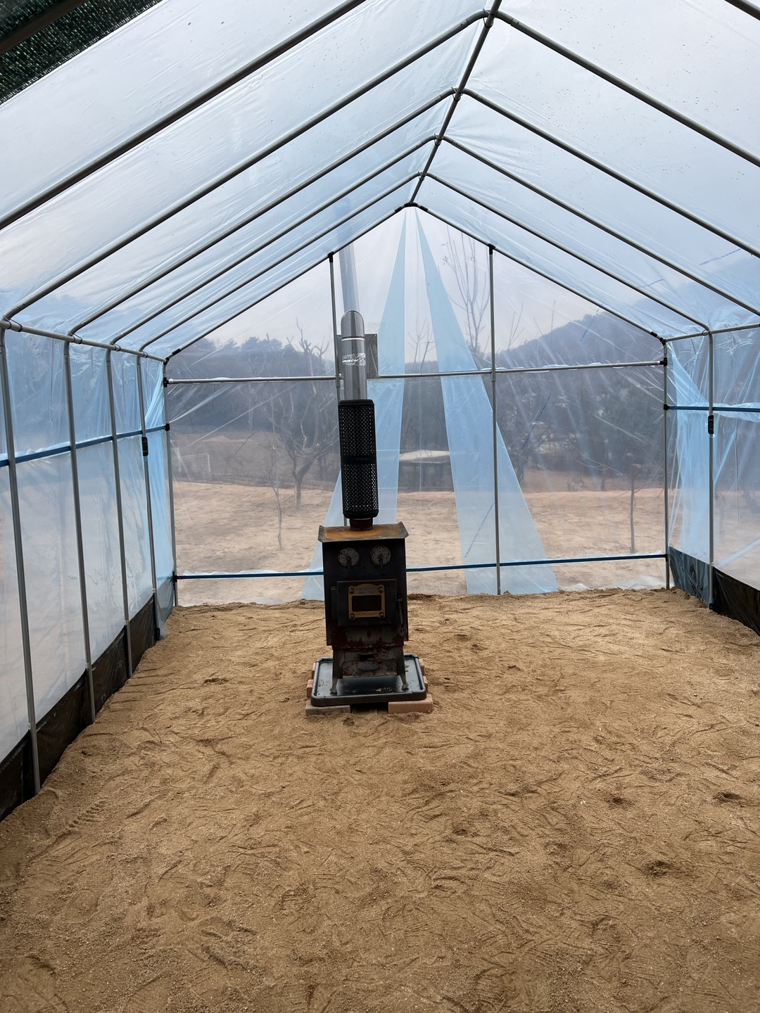 날씨가 좋을땐 아이들이 양평가기를 기꺼워하더니 추위탓인지 서울집이 좋다고 하네요. 남편 혼자 낑낑대며 무거운 난로를 옮기고 비닐하우스 마무리를 했어요. 한번 만들어 둔걸옮겨서 다시 만들다보니 두번째는 좀 낫다고 하더라고요. 그런데 왜 난로를 저기다 설치한 걸까요. 허허허 .