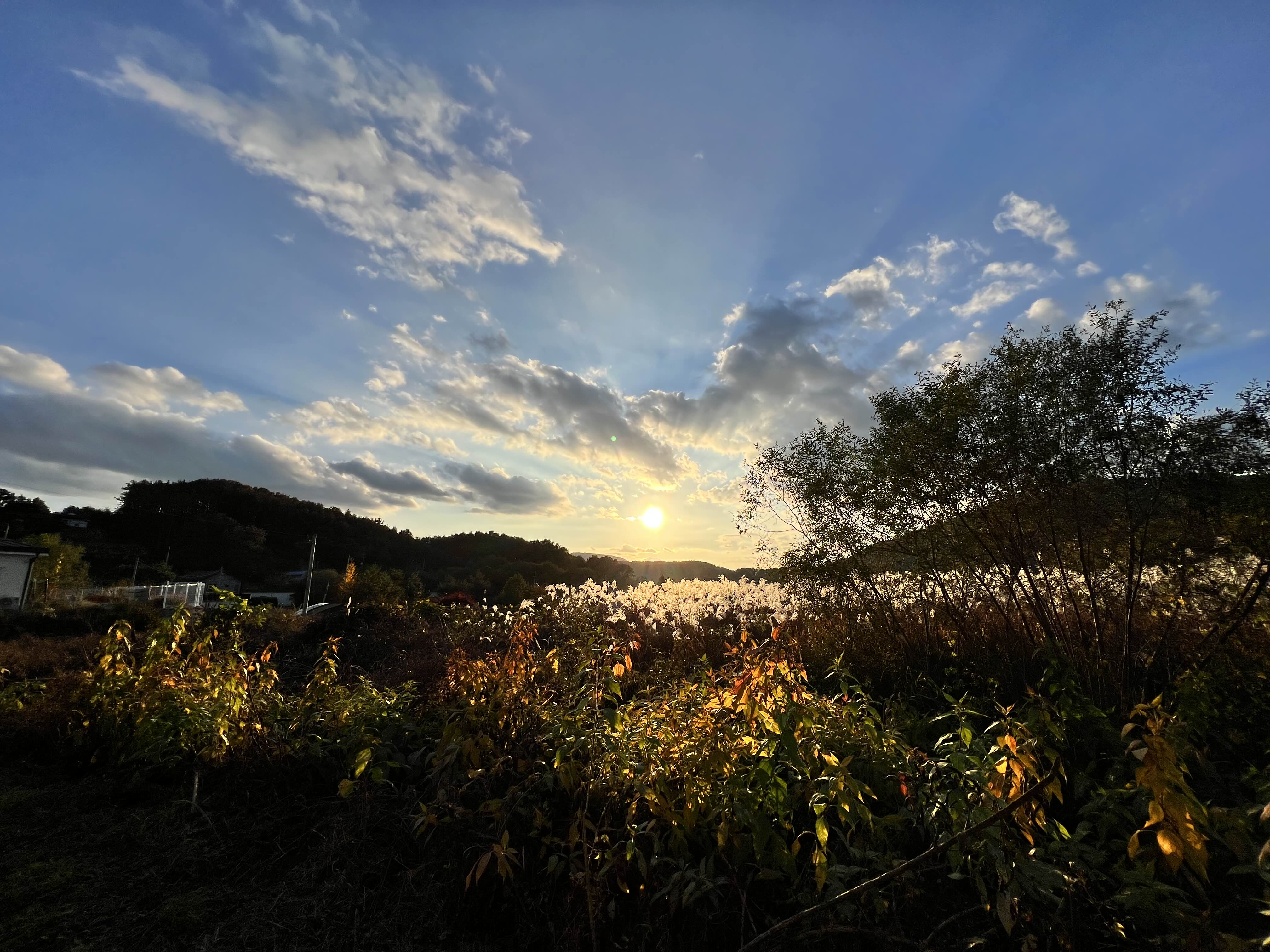 남편이 작업을 할 동안 아이들과 동네 산책도 좀 했는데요. 옆에 600평이나 넓은 땅은 의사양반네 꺼라는데 한번도 온 적이 없어요. 그분 들 땅에 갈대가 올라오고 해가 멋지게 지더라고요. 아래 사진만 보면 멋진 갈대밭 같지요. 딱 저 부분만 저렇습니다. ㅎㅎ