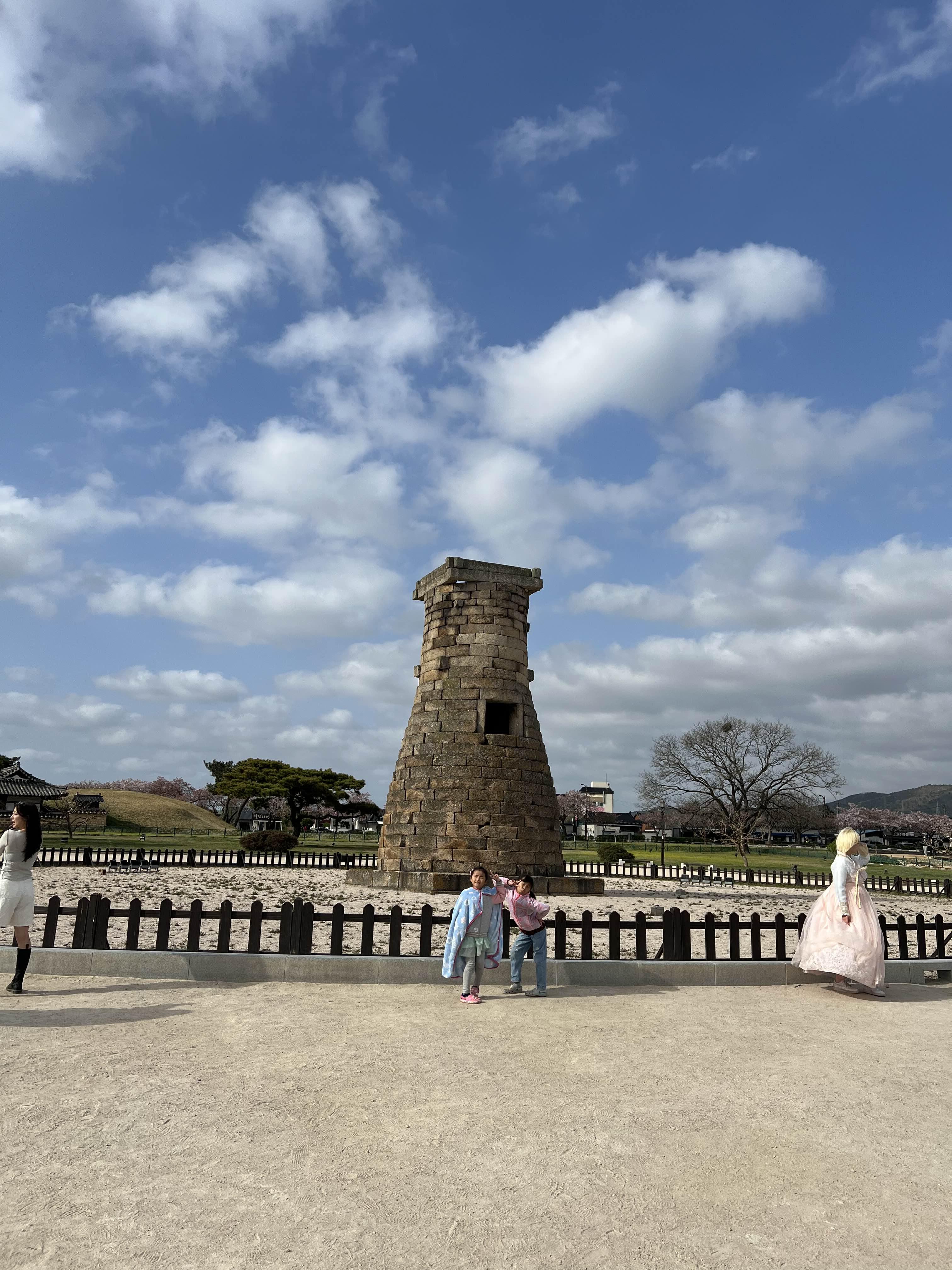 대릉원 앞에 주차를 하고 천마총을 갔다가 첨성대로 향하기로 했어요. 천마총엔 입장료가 따로 있고요. 내부도 전시관으로 잘꾸며져 있습니다. 박물관과 중복되는 내용이 많아서.... 입장료가 조금 아까웠지만, 아이가 영상자료도 꼼꼼히 보고 '남의 무덤 안'이라며 흥분하는 아이를 보니 좋더라고요. ㅎㅎ