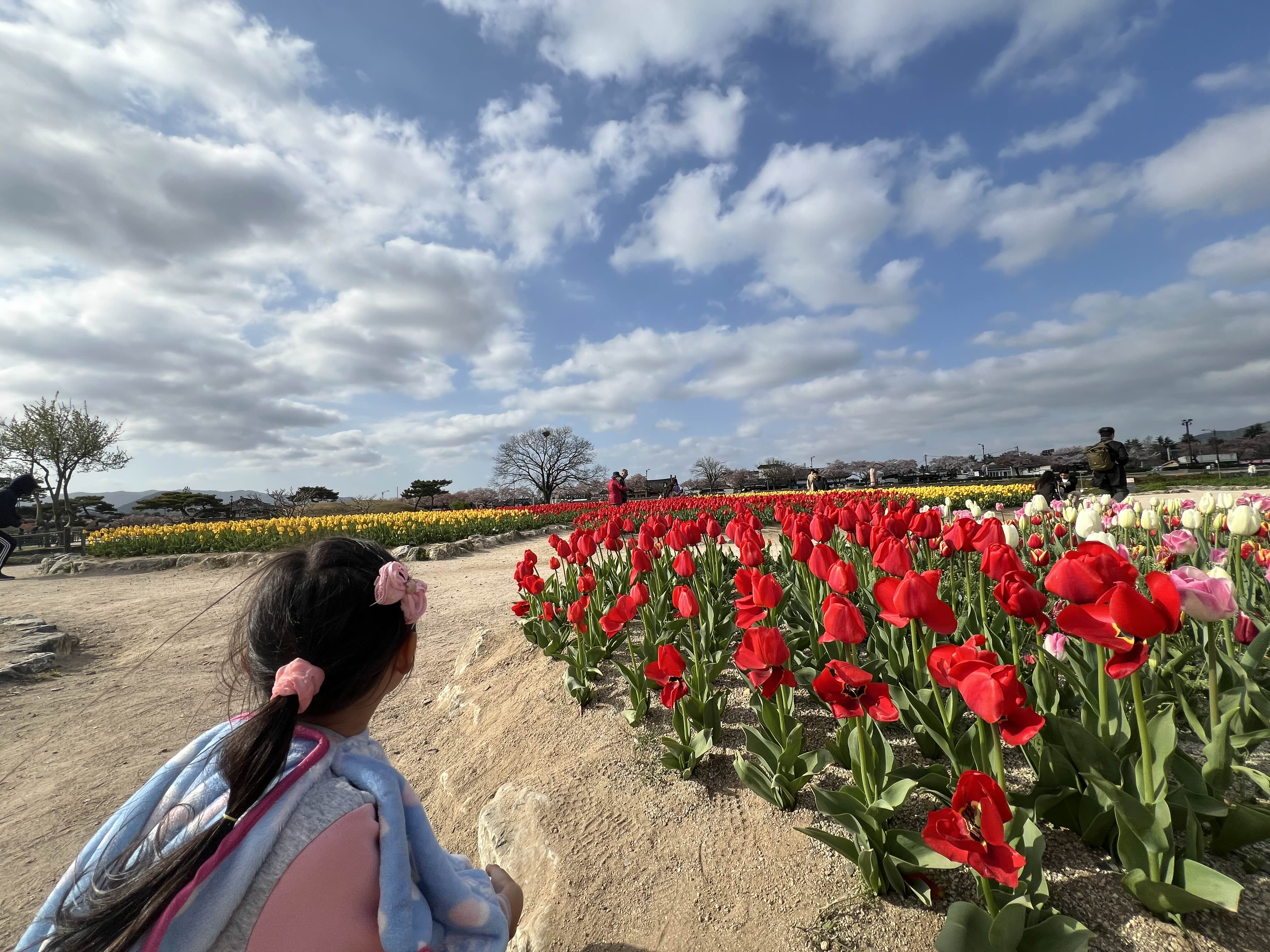 스탬프 투어는 누가 하나 했는데, 아이들이 무척 좋아하더라고요. 일정이 좀 빠듯해서 다 가보지 못하니 돌아올 때엔 다음번에 '스탬프 투어'목적으로 오기로 했어요. ㅎㅎ 전국이 다 한꺼번에 벚꽃이 폈는지 경주도 벚꽃이 많이 피어있더라고요.