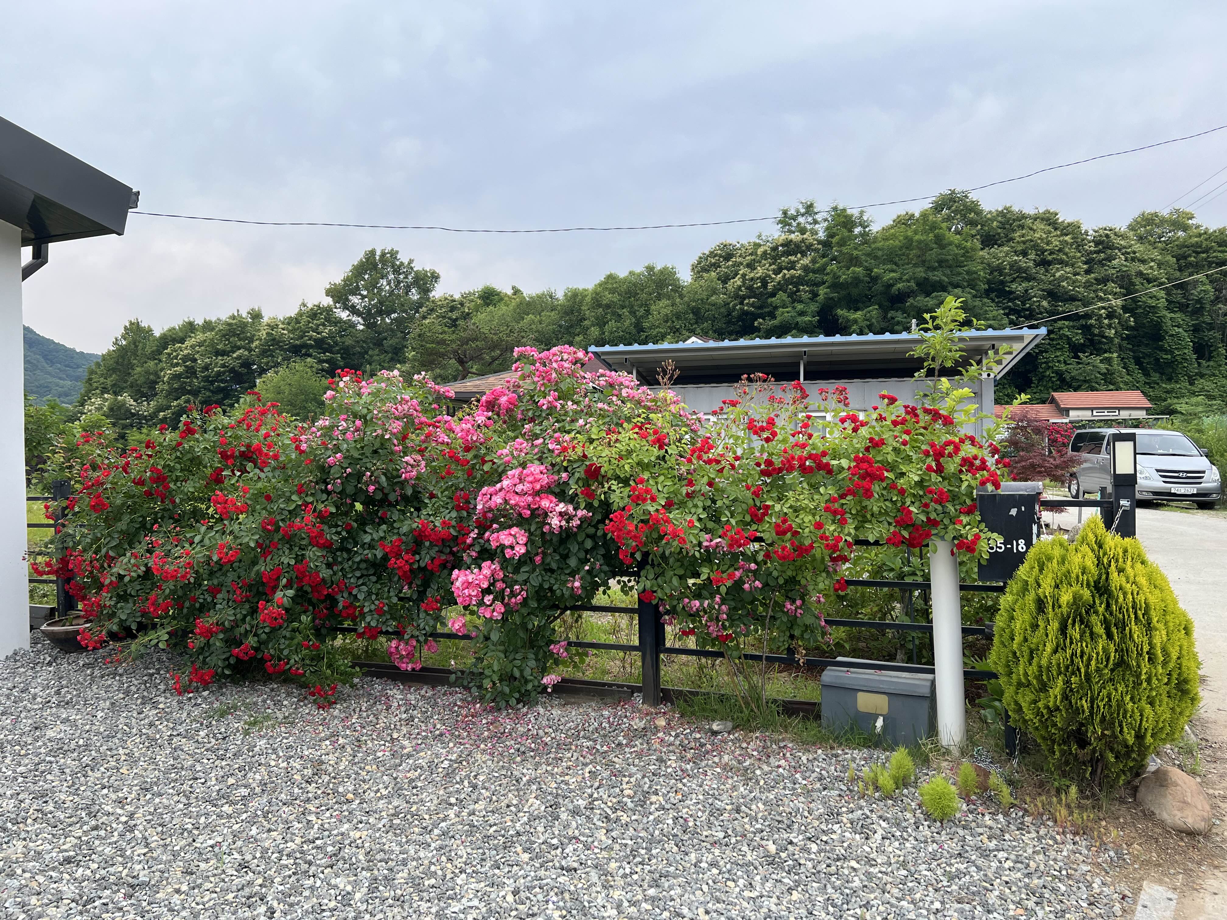 위의 사진은 넘의 집. 찔레장미가 참 아름답다. 남의 장미는 왜 이리 잘 자라고 나의 장미는 왜 이리 잘 죽는가. 참 웃기게도 1~2미터 높이 차이에도 얼어 죽고 그런다. 우리 반팔 입고 다닐 때 뒷집은 긴팔 입어야 하더라. 바로 뒷집인데! ㅎㅎ