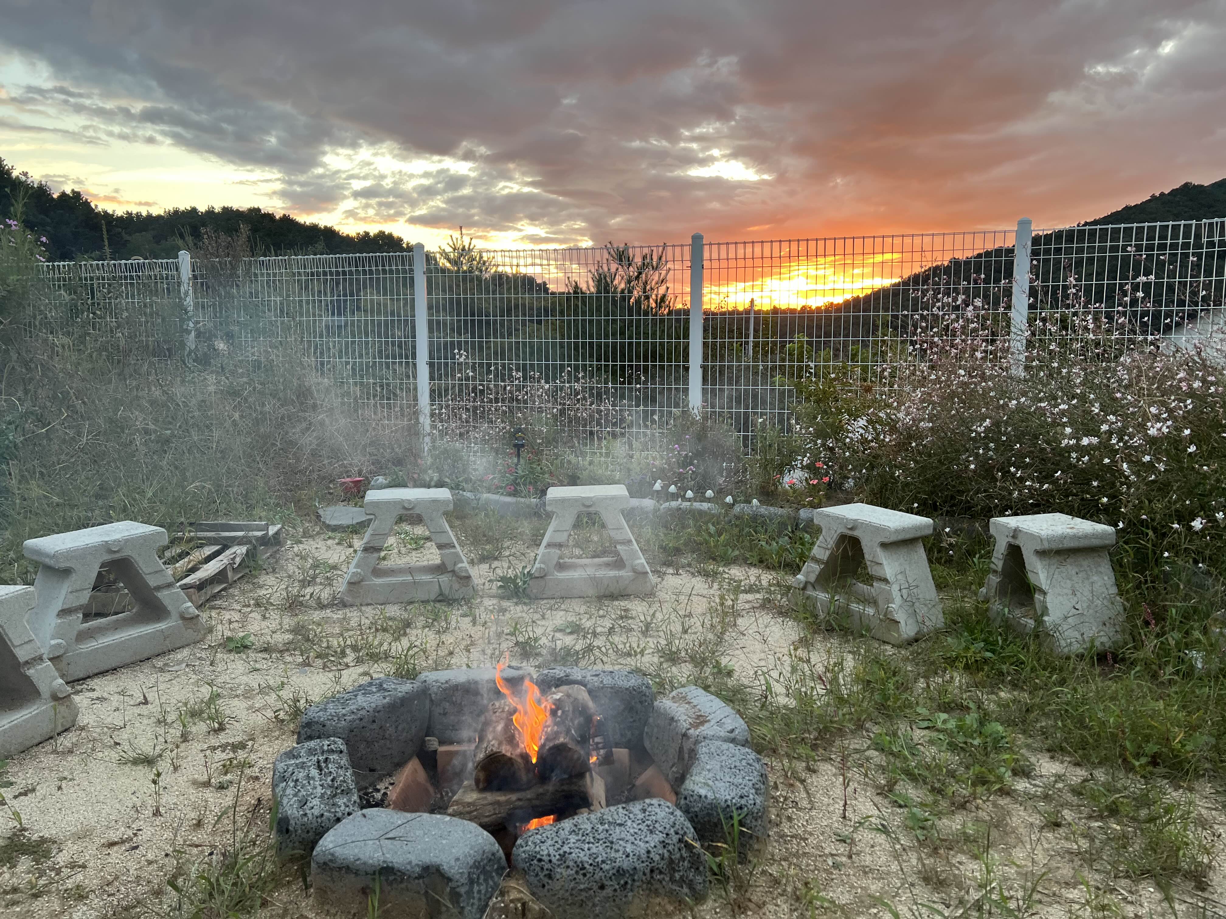 중간에 자전거로 편의점을 다녀오는 날도 있었어요. 애들이 이제 자전거 맛을 알아서 비록 4발 자전거지만 즐겁게 타더라고요. 걷는 것과 자동차를 타는 것 그리고 자전거를 타면서 보는 풍광과 느낌이 또 다르더라고요. 차마 걸어서는 못 가는 길로도 가보고요. 낯선 분들께 인사도 해보고요. 몇 년 전에 송현리 마마정원이라는 행사를 했었더라고요. 아마 코로나 전에 하고 코로나로 잠점 휴식기인 것 같은데요. 그래도 그런 터들이 남아서 볼만한 구석이 좀 되더라고요. 코로나도 끝났는데 다시 정원축제하면 좋겠네요.