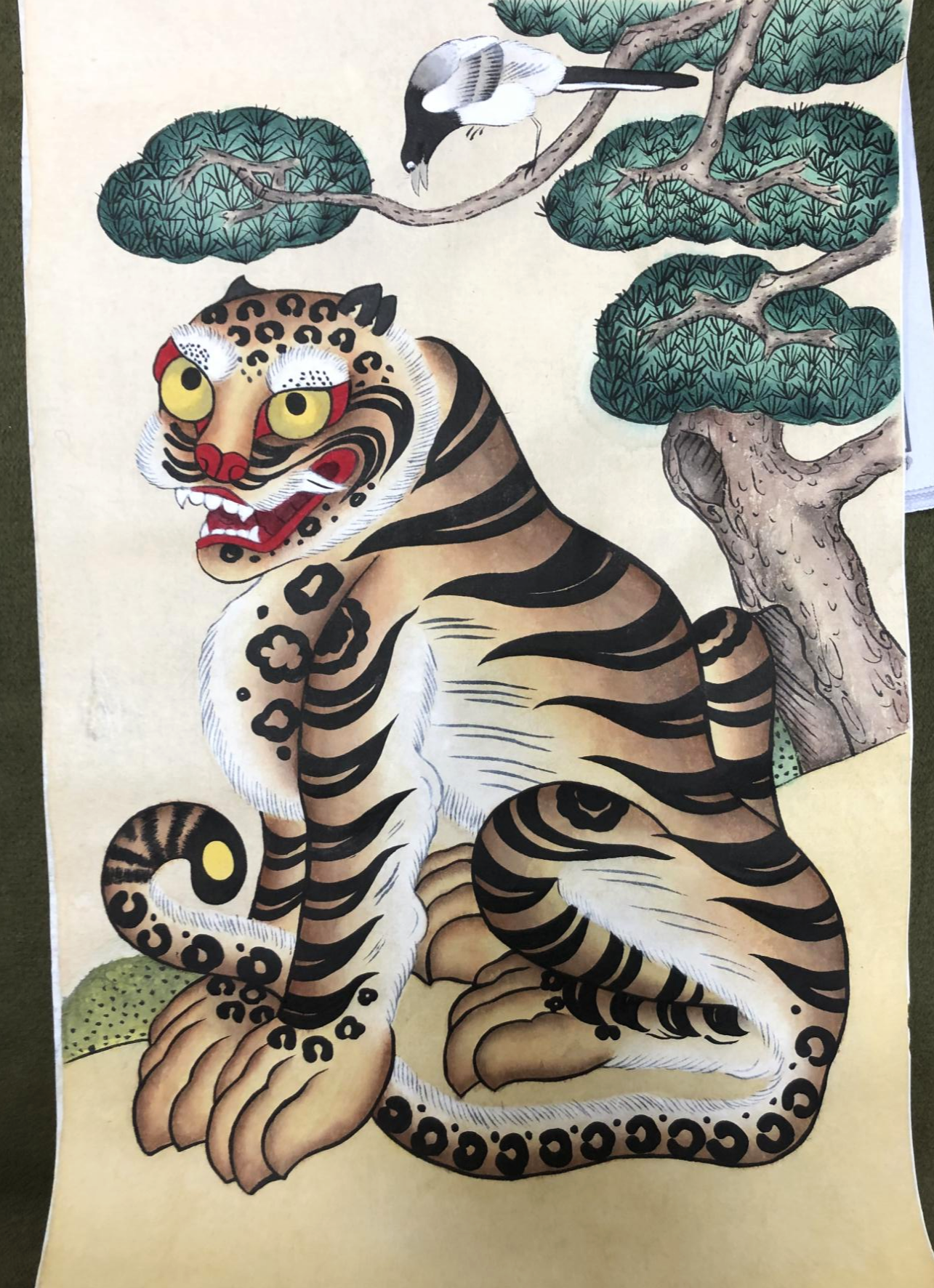 민화 호랑이 5주차. 다음주는 마무리하고 꽃들어가융.