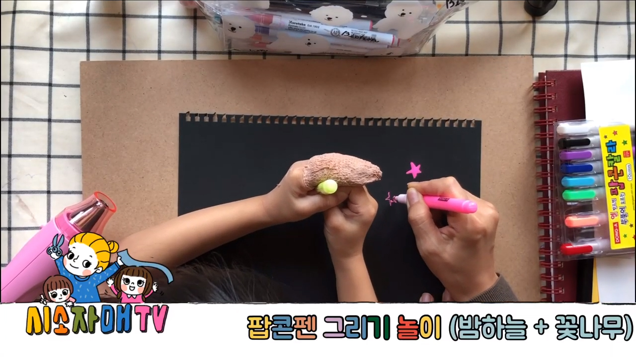 팝콘펜 그리기 놀이 (밤하늘+꽃나무)