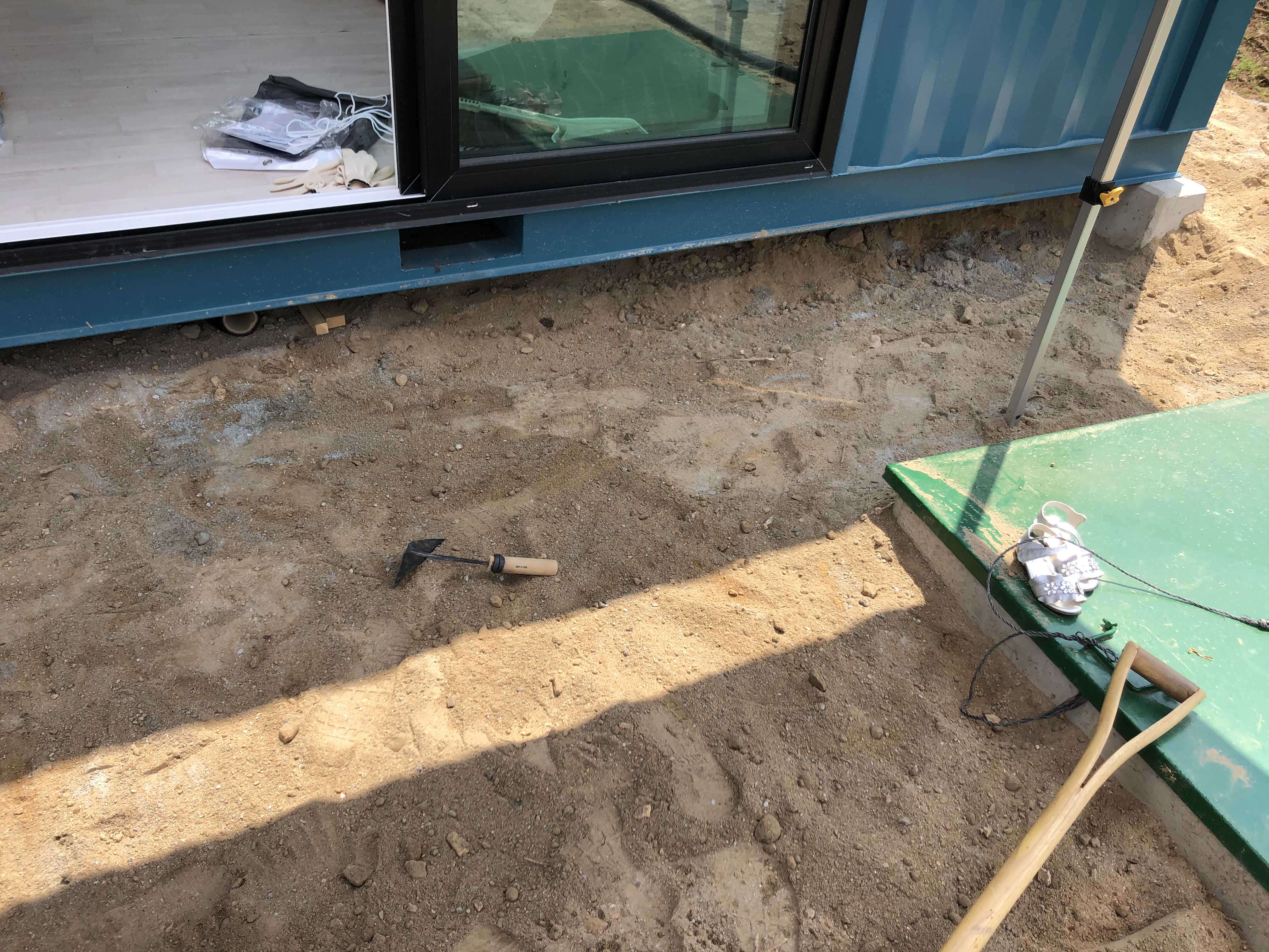 우선 쌓을 곳을 평평하게 다지고 작은 폴대를 꼽아 수평을 맞췄다. 남편이 삽으로 흙을 좀 날라주었지만, 호미로 부지런히 다듬고 손으로 수평을 만들어가며 평탄화 작업을 했다. 지난 겨울이 그닥 춥지 않아서 별의별 곤충이 넘쳐난다는데, 그 중 하나가 노래기다. 노래기가 그늘아래 숨어서 꿈틀대고 있더라. 그리고 개미집도 벌써 하나 자리를 잡았는데, 나는 무참하게 구멍을 밀어 버렸다.