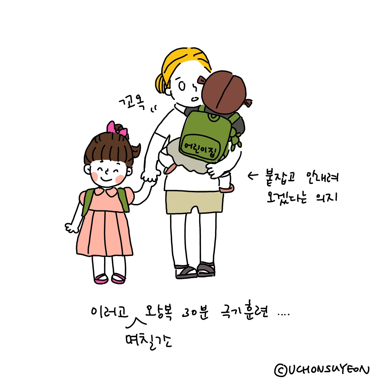눈탱이 밥탱이 되어서 그런 눈으로 집까지 안아달라고 하면 안안아 줄수가 없잖아요 에구 허리 팔.... 11kg 넘는 애야 엄마 근력부족해