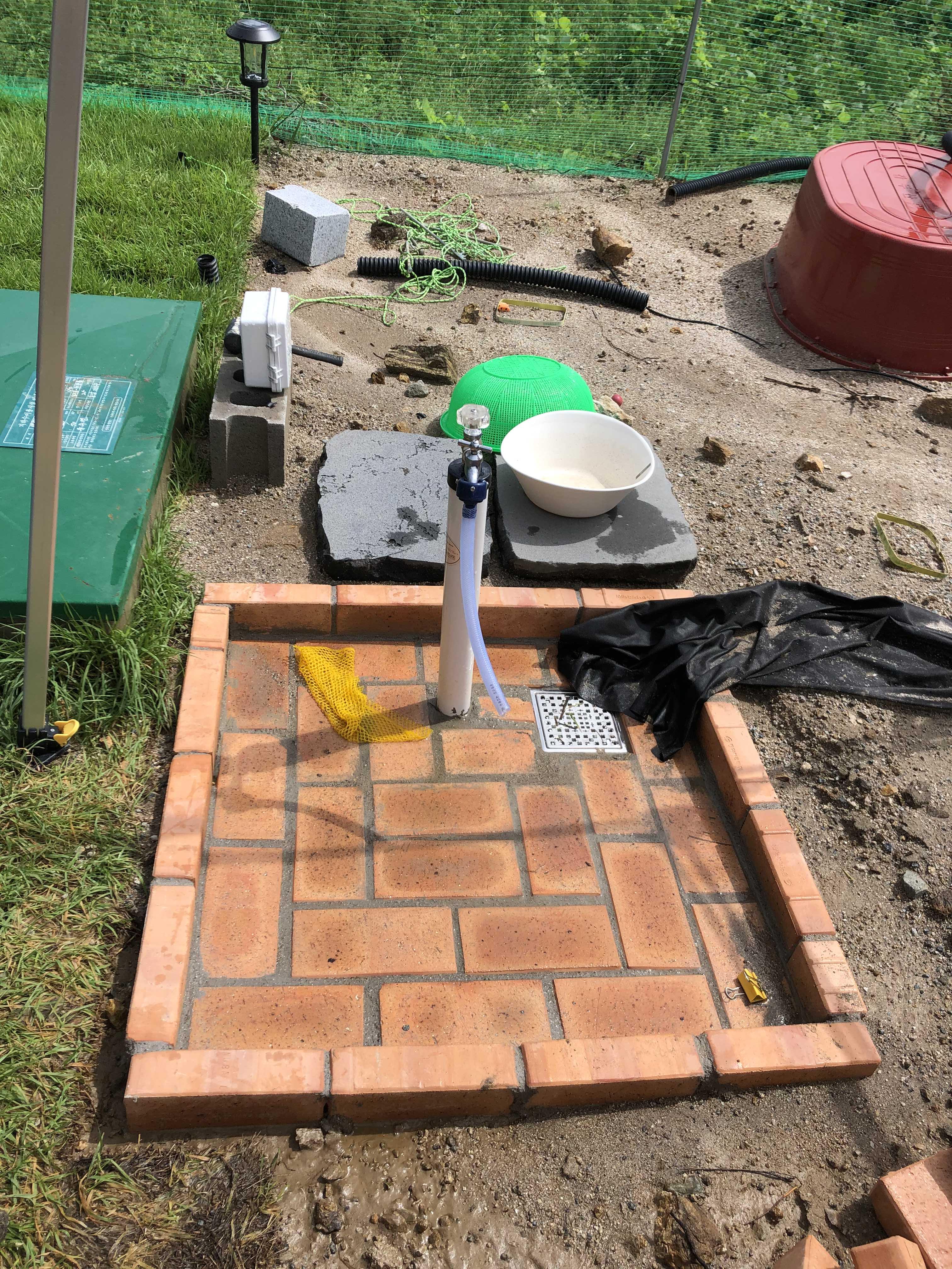 그리고 며칠 전 해놓고 간 수전의 완성본. 최종은 남은 벽돌로 주변을 한번 감싸듯 두었는데, 그건 사진을 안 찍었네. 밤늦게 마무리해서 그런지 사이드 벽돌 중 하나의 이음새에 구멍이 생겨있었다. 후후후후후