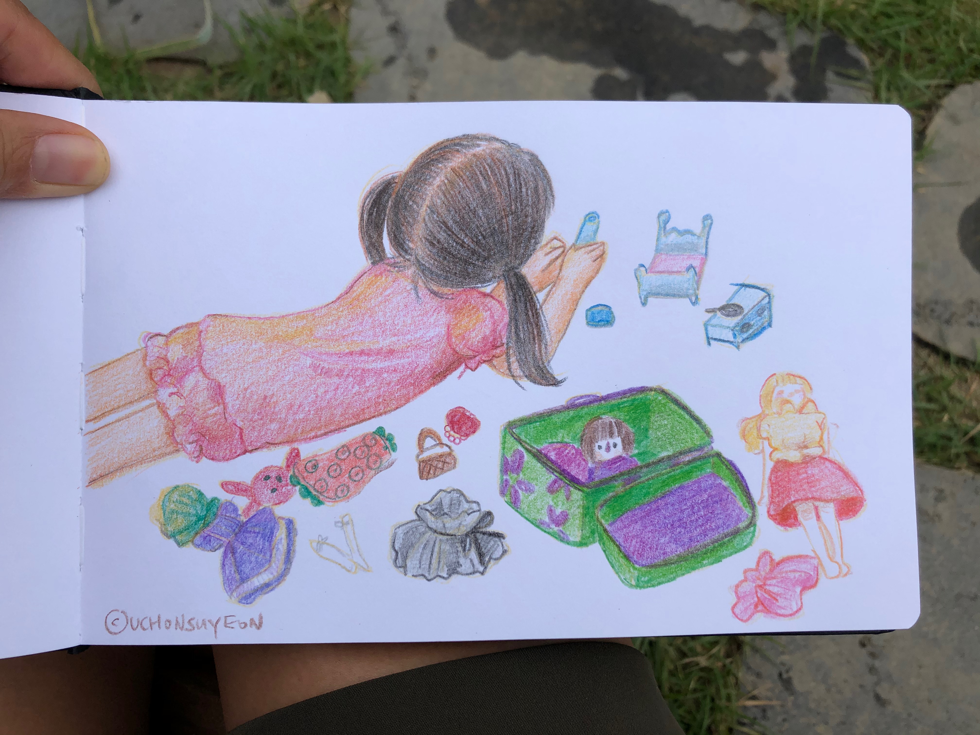 주말농장에 오면 애들이 자기들끼리 잘놀아서 좋아요. 하지만 요즘 같은 장마엔 할게 없으니 유튜브만 보더라구요. 그래서 인형놀이를 가져왔더니 잘놀네요 후후