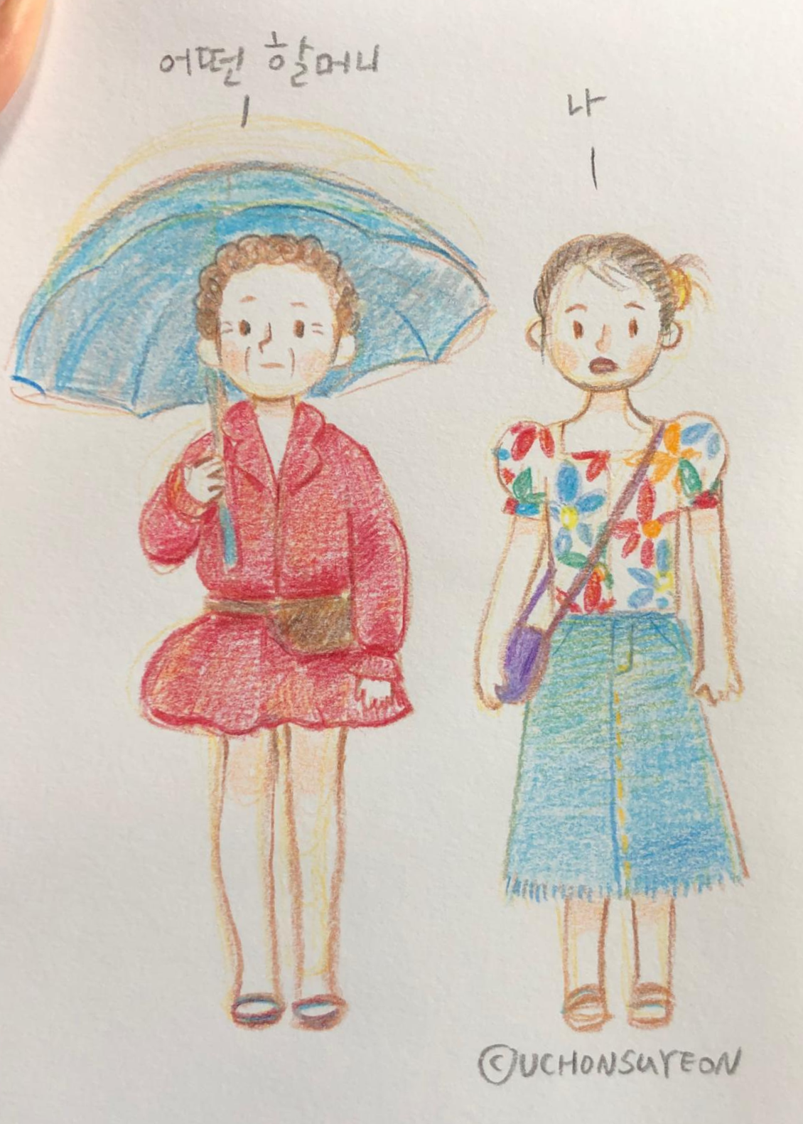 애들 등원시키는데 앞에서 걸어오는 강렬한 인상의 한분. 어떤 할머님 ㅎㅎ 와웅 나의 동공지진