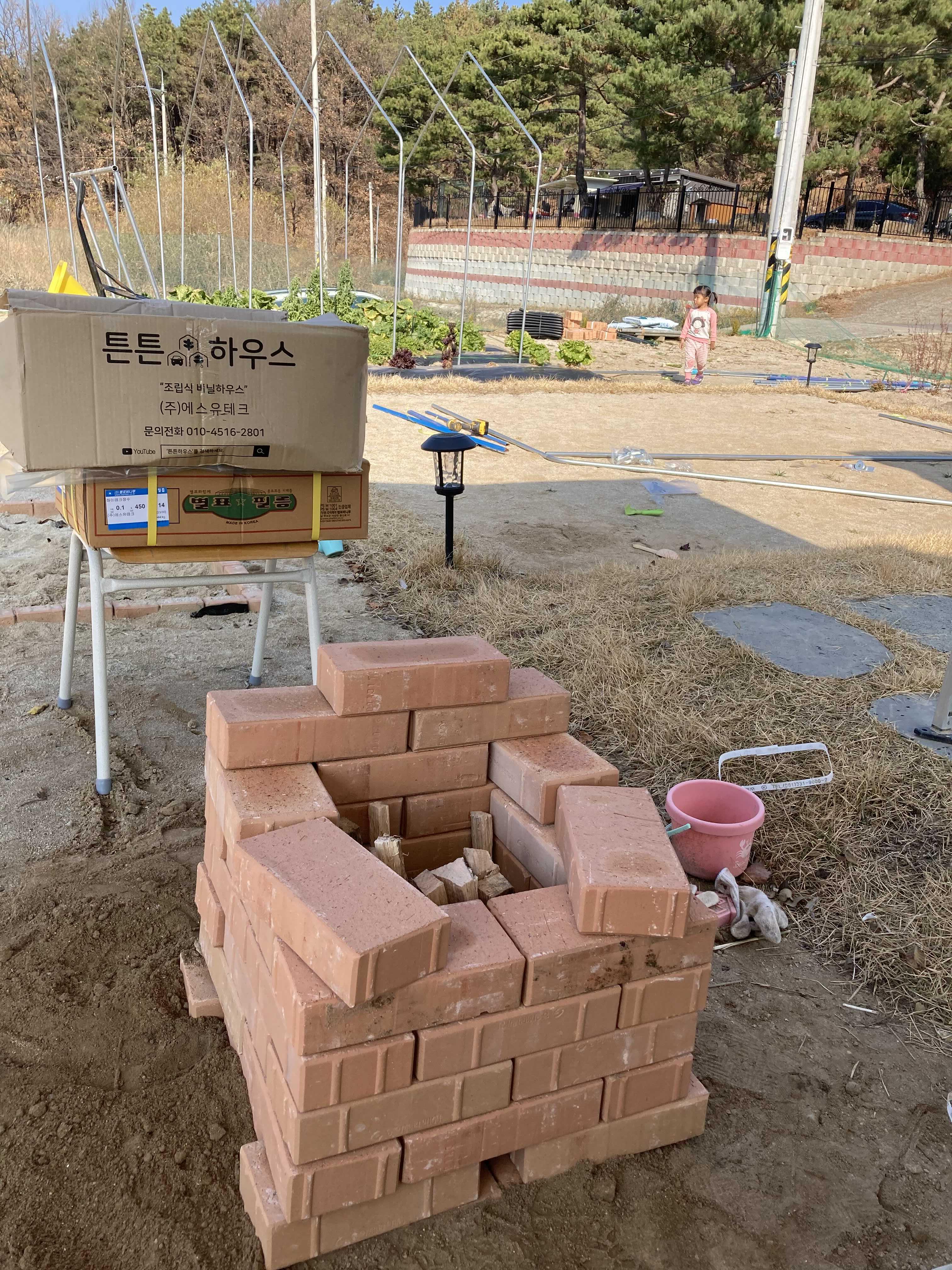 벽돌들을 추가로 사왔었다. 나는 파이어핏을, 남편은 화덕을 만들겠다고 아웅다웅했다.