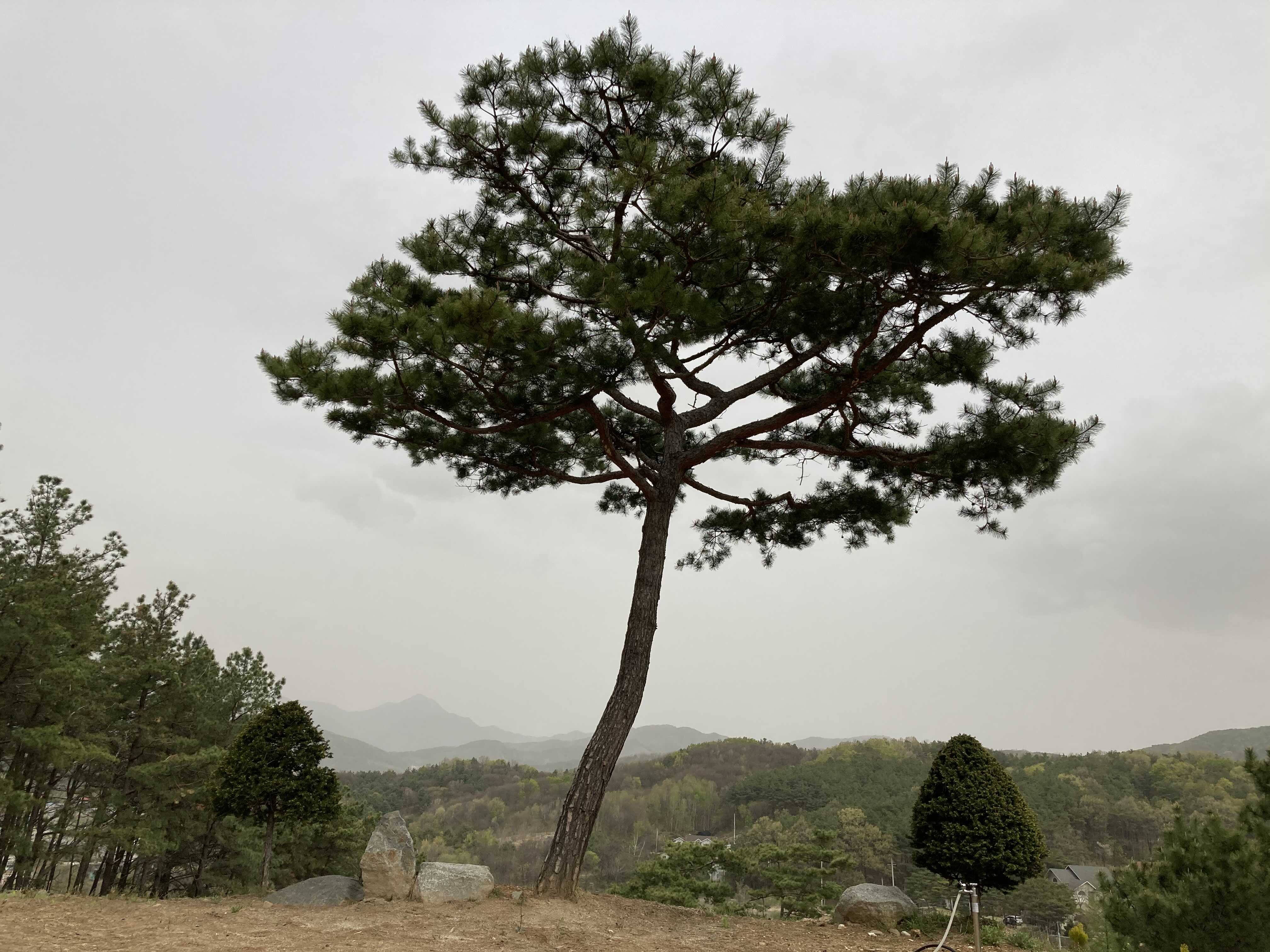 토요일 이른 아침부터 둘째가 산책을 가자고 보채서 나왔다. 굉장히 고집이 세고 힘도 세서 끌려가면 한없다. 어쩌다 보니 바로 옆 작은 주택단지 산정산까지 올랐네. 여기가 한옥 스타일로 만들고 한옥도 몇 채 있어서 올라와 보니 풍광이 제법 좋다. 이 나무가 있었던가? 옆에 바위 위에 앉아서 잠깐 쉬었다. 나는 참 등산 안 좋아라 하는데...... 강제 등산했다.