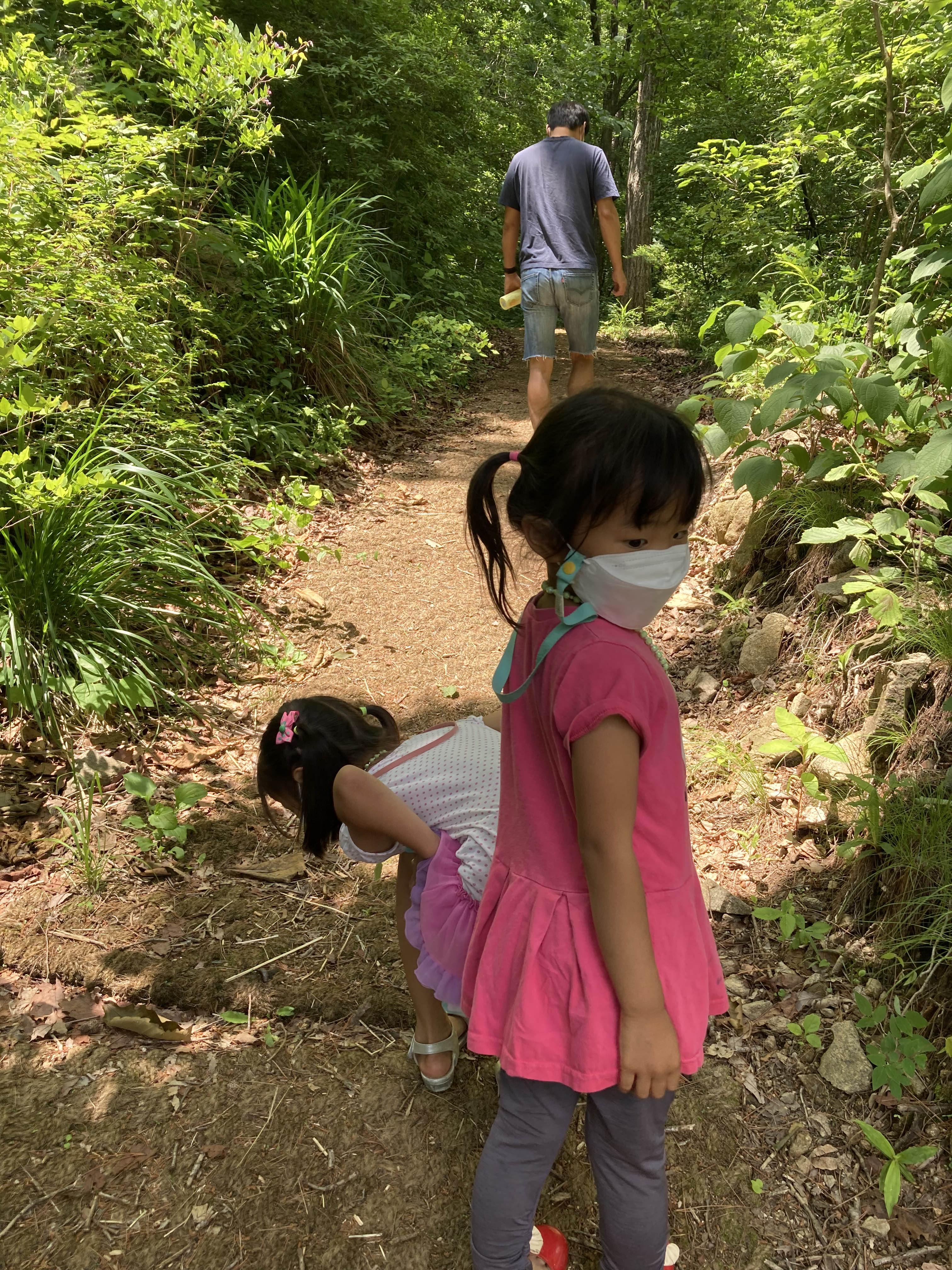 산책로가 산길이면서 잘닦여 있어 안전하다. 가을이 되면 다시 와봐야겠다. 아무 정보 없이 무작정 왔더니 준비가 소홀했다. 아이들 마실 물도 없었으니까 말이다. 이런 공간을 발견할 때마다 보석을 발견한 것 같다. 우리나라에 멋진 공간이 많은데, 모르는 곳이 참 많다. 세미원이나 용문사처럼 탁 트여서 멋진 곳도 있지만, 이런 아기자기 한 곳도 참 좋다.