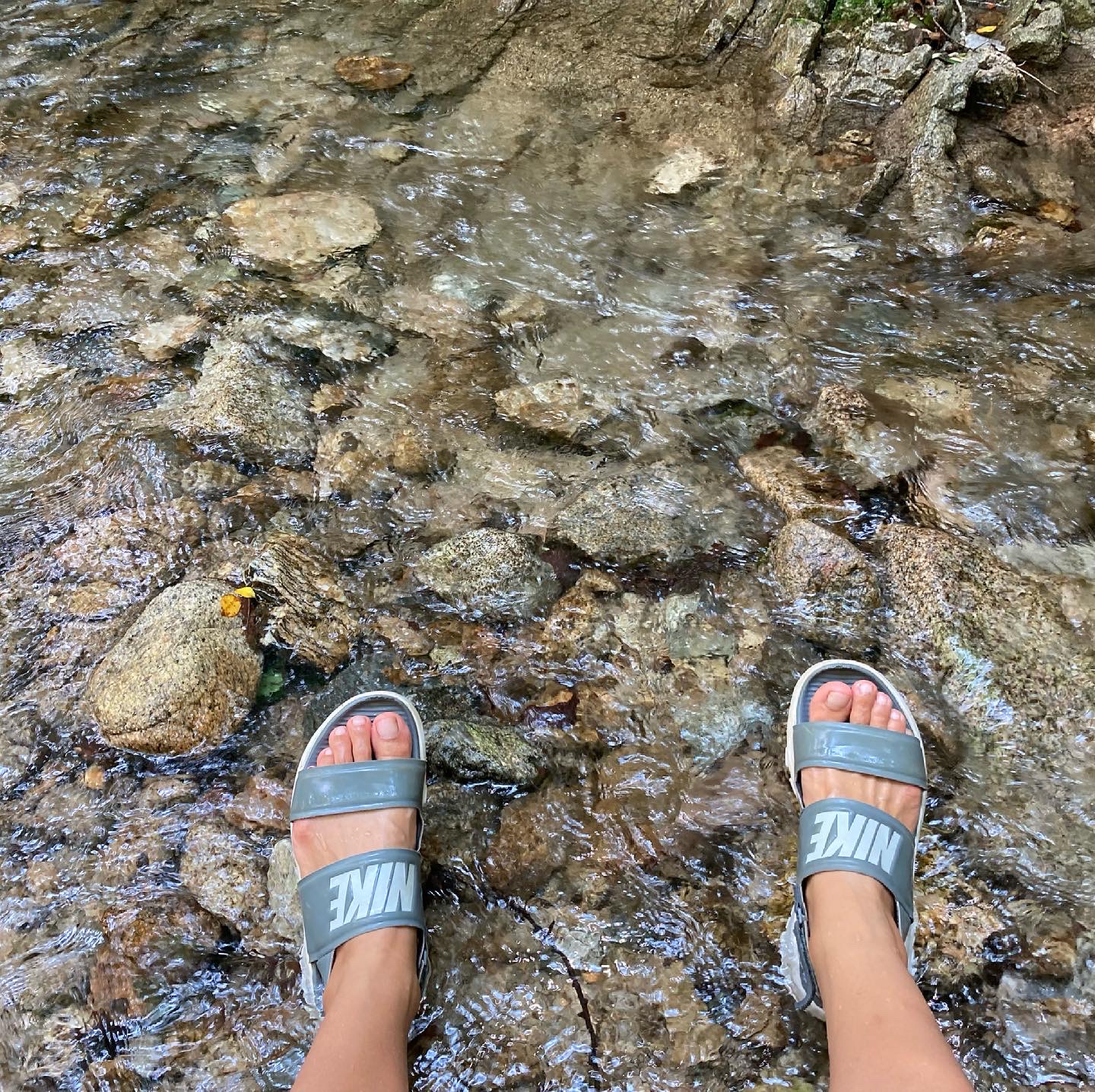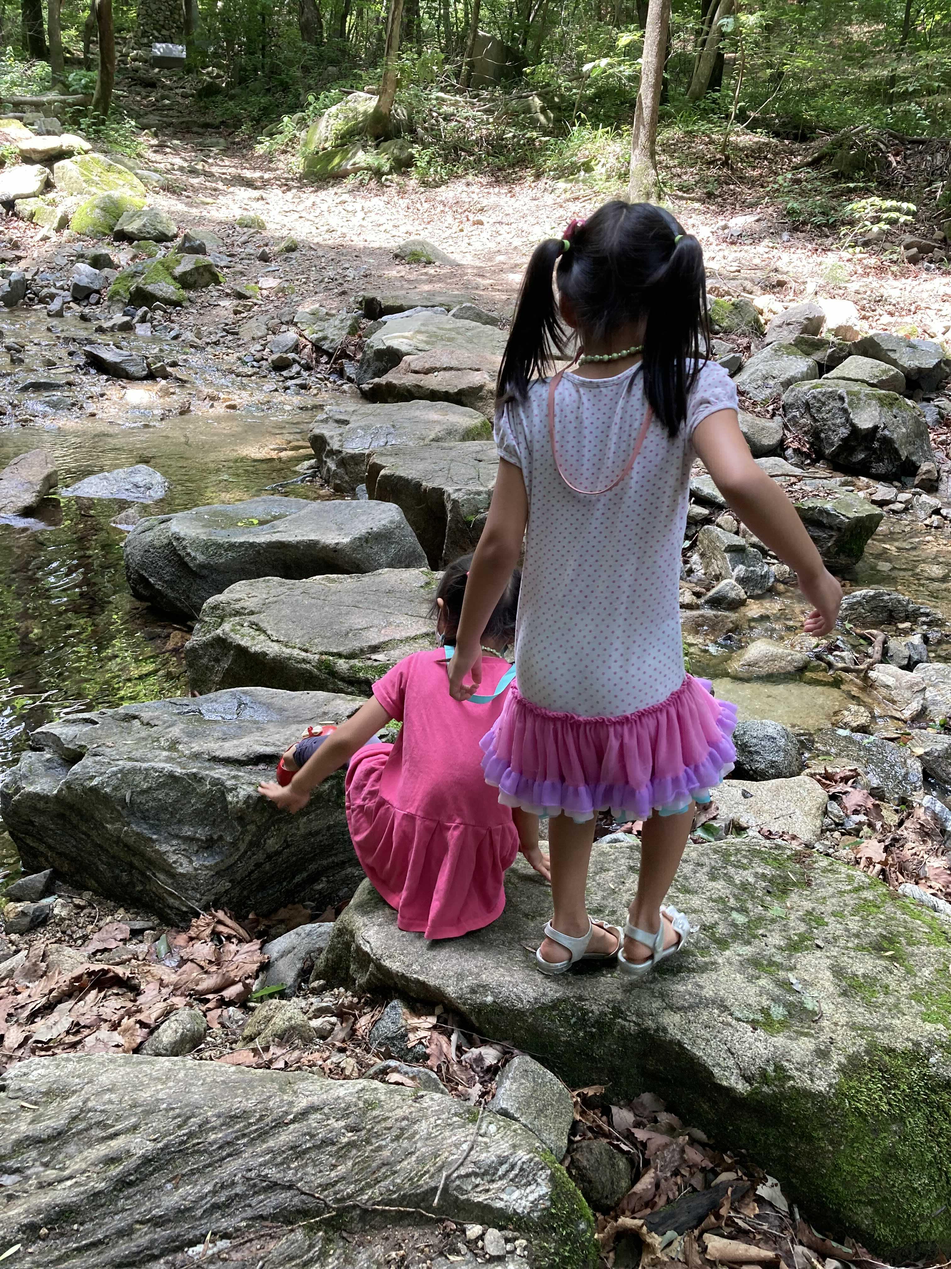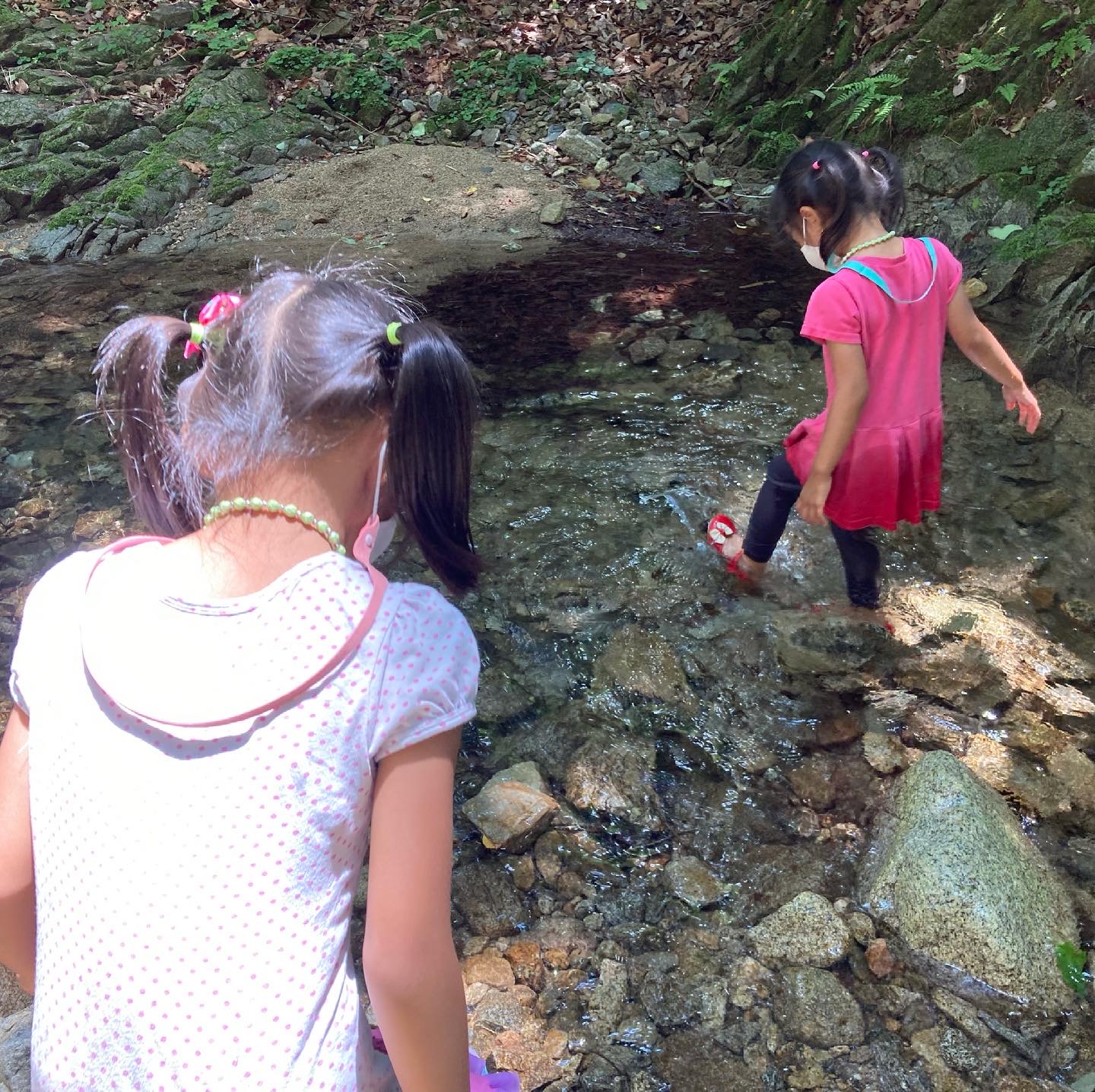 내려오면서는 계곡물에 발담그고 잠시 놀았다. 옆에 구명보트가 있는 것도 그렇고 계곡물로 들어가는 길이 있어 그랬다. 아이들은 물놀이 기대를 하고 왔던 주말인데, 모터가 고장 나서 농막에 있는 간이 수영장을 이용 못했다. 신나게 놀다 보니 가슴 아래까지 다 젖어버려 달달 떨더라. 마침 둘째 어린이집 이불이 차에 실려있어 그걸로 몸을 댑혀주었다.