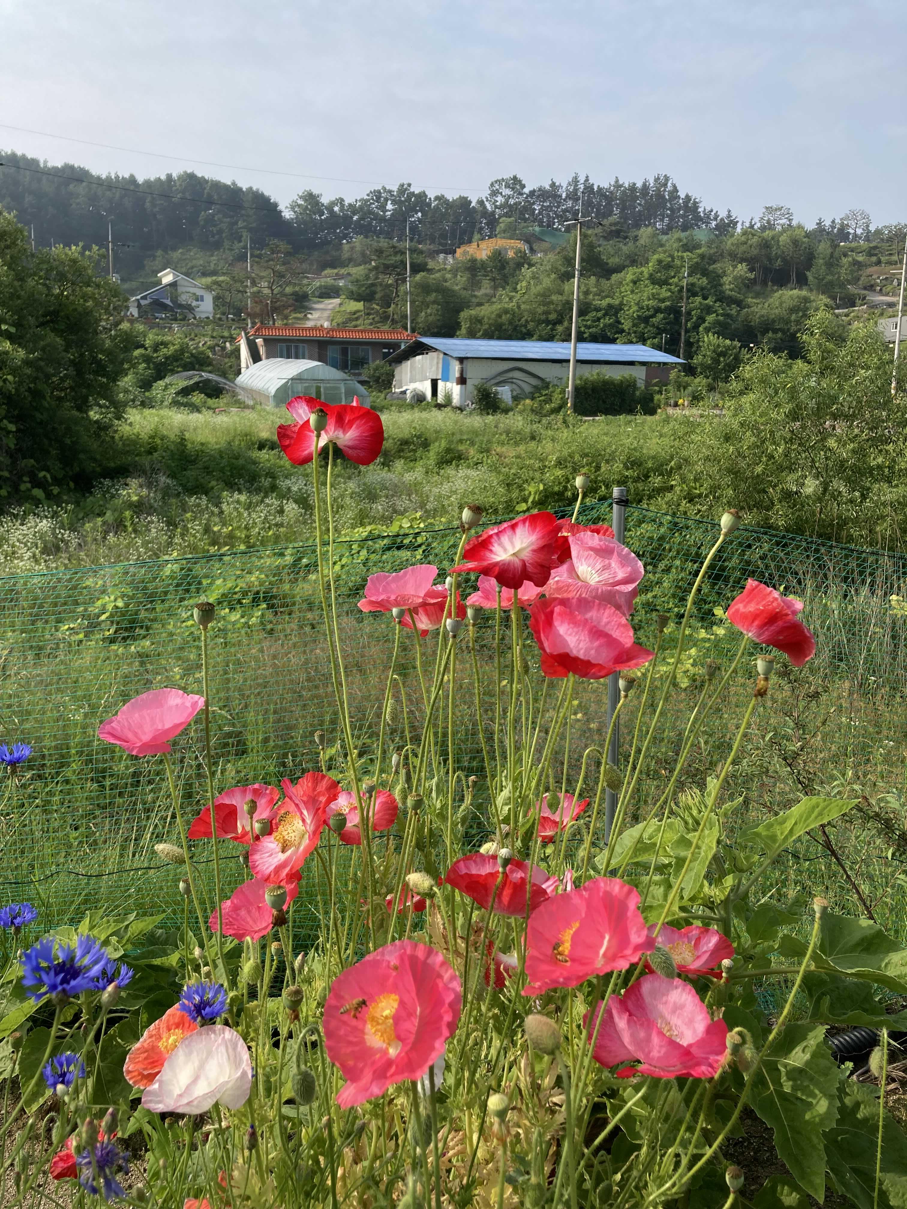 꽃사진은 참 아쉽다. 실물보다 예쁘지 않아서다. 실물의 반의 반만큼만 에쁘게 찍어도 좋으련만. 영 기술이 부족하다. 비료를 많이 주었더니 이 꽃은 한참 크고 예쁘게 피었다. 주차장 입구에 있는 작은 공간에 핀 양귀비는 참 작은데 말이다. 이 종은 잘피고 잘진다. 한복치마같은 모양새로 떨어지는 꽃잎도 괜찮다.