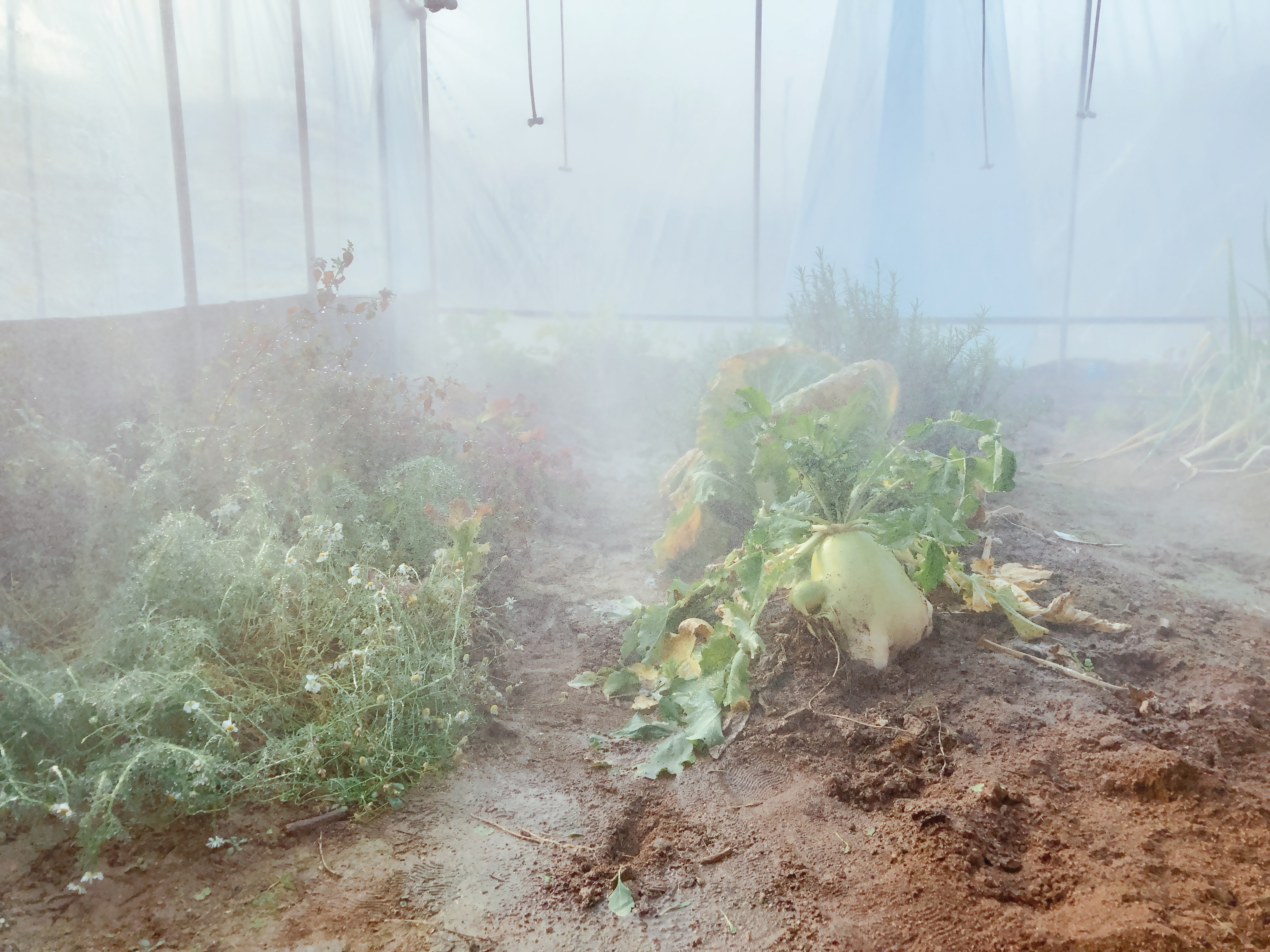 남편이 동파 우려가 있어서 비닐하우스로 가는 호수의 물을 뺀다고 합디다. 하여 비닐하우스 마지막 물 주기를 하여 보고 있었어요. 한낮엔 비닐하우스가 아직 따뜻해요.
