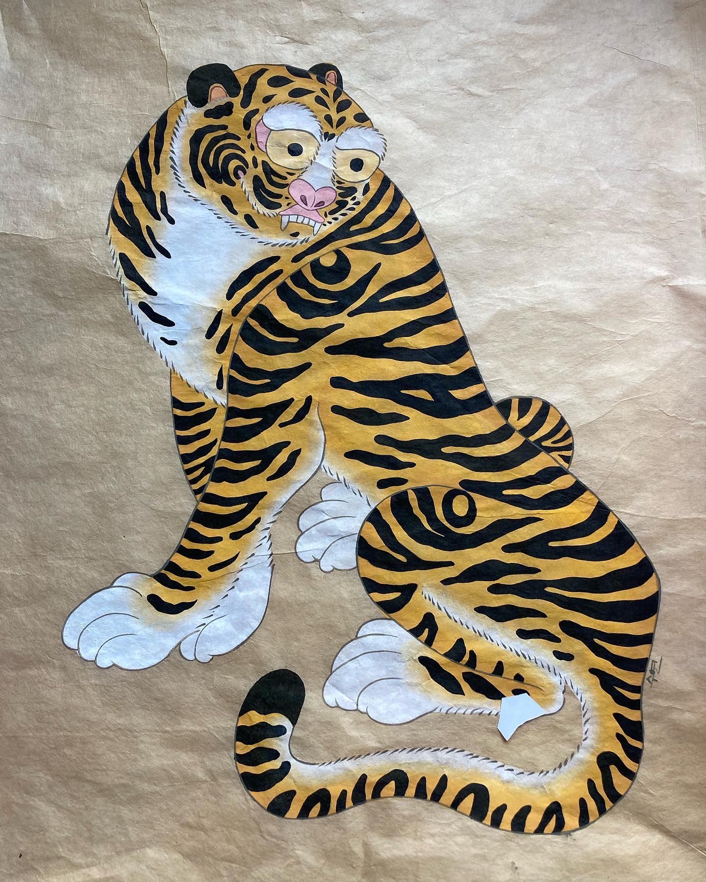 호랑이도 3개나 떠서 그려습니다. 노랑 검정호랑이가 정말 오래 걸렸네요. 검정은 한번만 삐끗해도 큰일이라. 노랑 호랑이 중간에 둘째가 점을 찍고가서 문양이 살짝 다름.. ㅜㅜ 아 그리고 흰 호랑이는 아직도 완성안했네요. 털치는 연습 해본다고 하다가 아직도 진행중. 제대로 배운 적이 없어서 뭐가 맞는지 모르겠다......