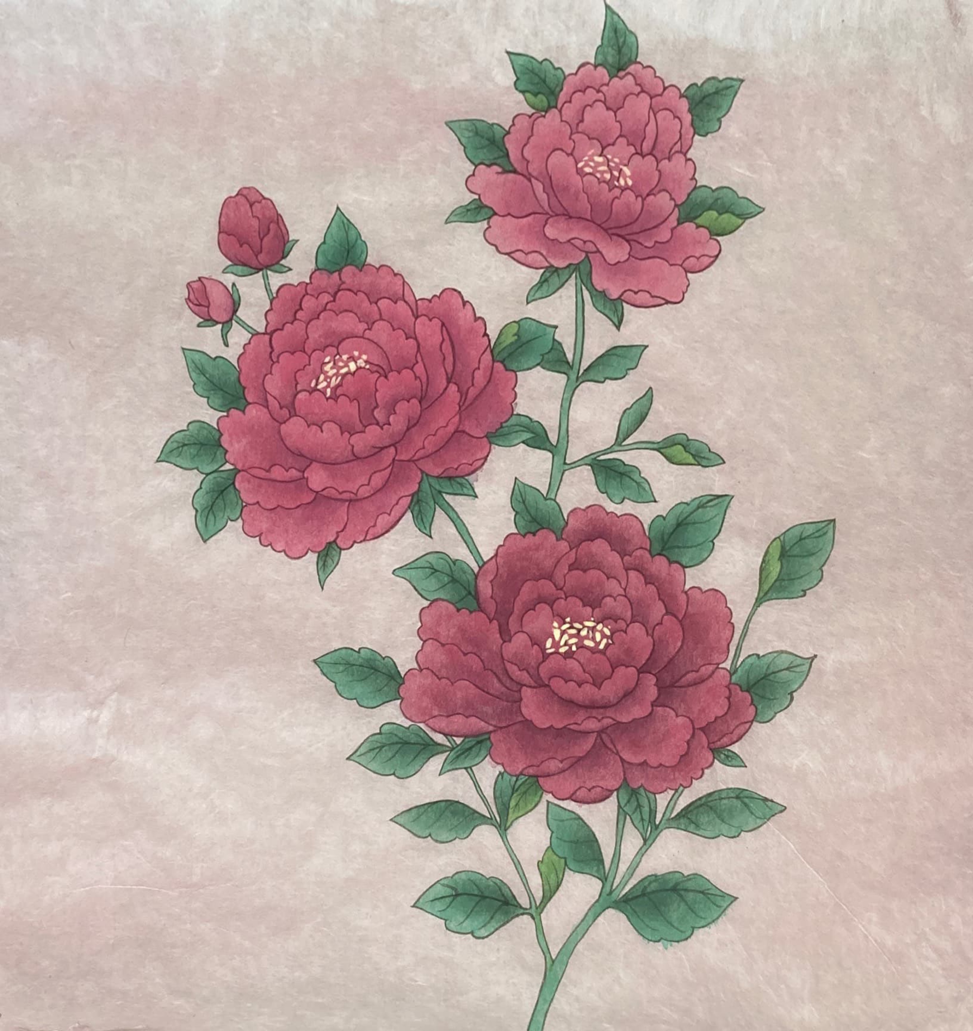 색이란 게 조합을 잘했다고 해도 막상나오는게 너무 다르네요. 바닥색하고도 스며드는 게 다르고 물양에 따라서도 다르고요. 바림을 하면 또 달라지죠. 그게 민화의 매력인 것 같네요. 같은 본이라고 해도 결과 값이 마냥 같을 수가 없으니까요. 숙련자의 선과 초보자의 선도 다르고요.