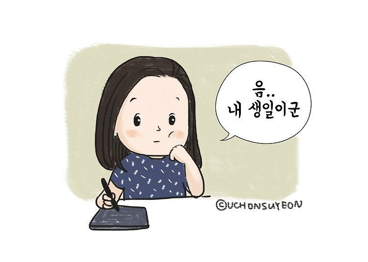 내 생일 내 생일이였다.결혼전내 생일은 늘 크리스마스랑 가깝고늘 방학안에 있어서친구들을 만나기 어려웠다.가장 하이라이트는 친정식구 5명 모두 음력 11월 생이라한달에 다 몰려 있는 것이다.한달내내 미역국 잔치..그러다보니 생일에 대해 큰 의미를두지 않고 살았다.결혼까지하고 나니12월 앞뒤로대소사가 장난 아니다.친정부모님 생신챙기고딸아이 크리스마스선물 등 챙기고(산타할아버지 선물대리챙기니 두배.. )시어머니 생신도 바로 다음달 ㅎㅎ그리고 구정..5월에 이은 돈잔치 달이로구나...그래도 이번에 남편이 큰용돈을 생일선물로 주고직장상사도 생일용돈으로 두둑히 주셔서이히히..그 돈들로 타블렛이나 하나 살까 고민중이다. 나 ...점점 돈만 밝히는아줌마가되나...마음만은 22세.. (3년전까지는 17세였는데..) 그림 drawing/그림일기 - joy n happy 2018.12.20